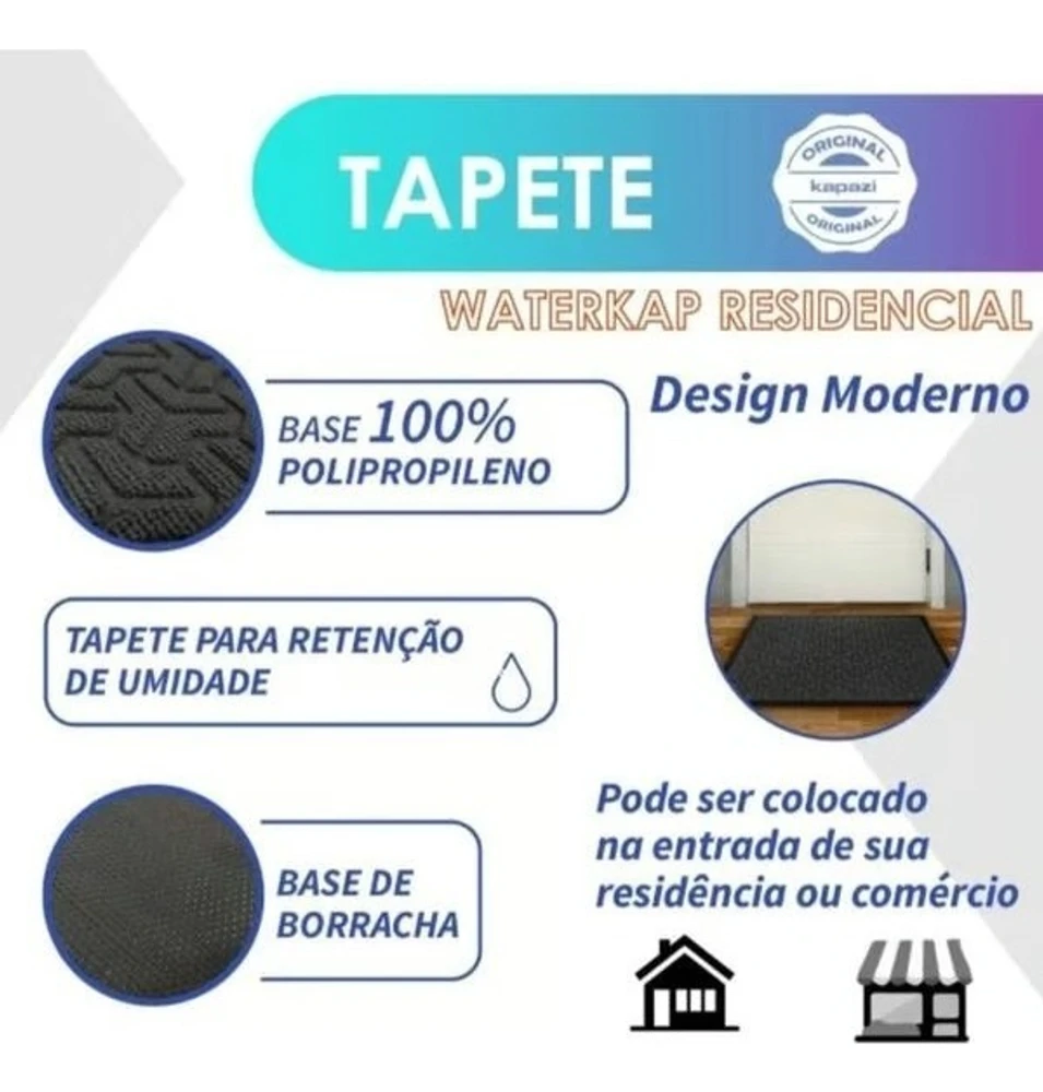 Produto ideal para áreas de grande tráfego de pessoas, o tapete waterkap é a escolha perfeita. Por ser um tapete muito resistente, o WaterKap é um tapete usado para enxugar os pés antes de entrar em um ambiente interno.
