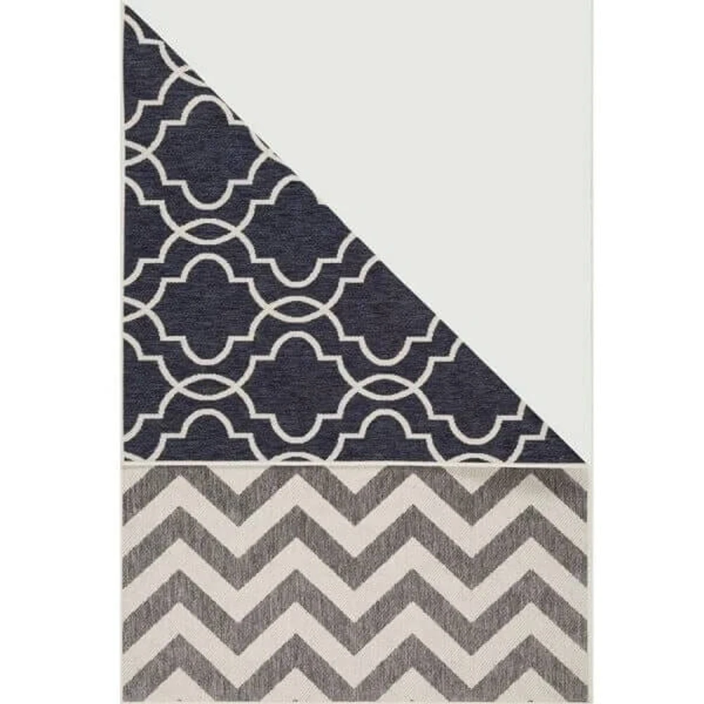 Transforme qualquer ambiente com o Tapete Dupla Face 1,40 x 2,00 Kayla 03. Com duas estampas exclusivas, azul marinho com design geométrico moderno de um lado e padrão zig-zag em tons neutros do outro, ele permite renovar seu espaço com praticidade e estilo. Produzido em material resistente e fácil de limpar, é ideal para salas, quartos e áreas de convivência que buscam versatilidade e personalidade na decoração.