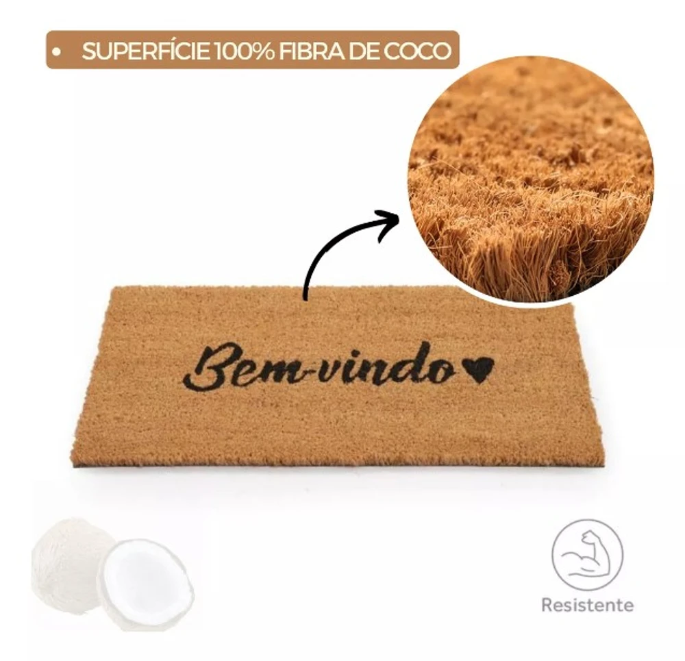 Com o intuito de proporcionar a você o que há de melhor, a superfície é composta de fibra de coco 100% natural, material de ótima qualidade que garante uma alta resistência e torna-se perfeita para limpar a sola dos calçados e reter a sujeira e resíduos ali existentes. Além disso, o Capacho de Porta Fibra de Coco possui base antiderrapante, com o fim de tornar o uso mais seguro e evitar acidentes.