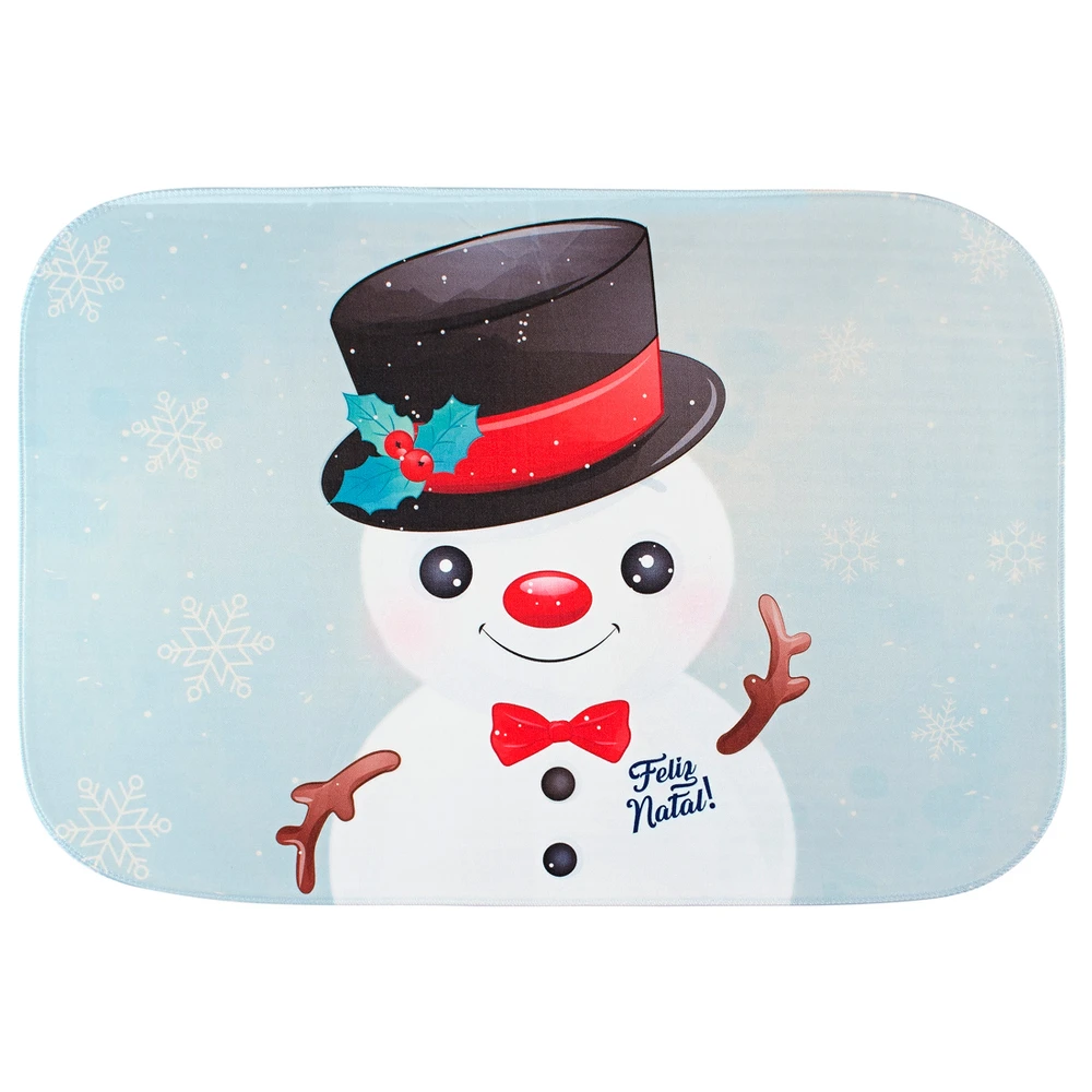 Tapete Para Quarto Estampado Natalino Boneco de Neve Azul 60cm x 40cm - Base Antiderrapante