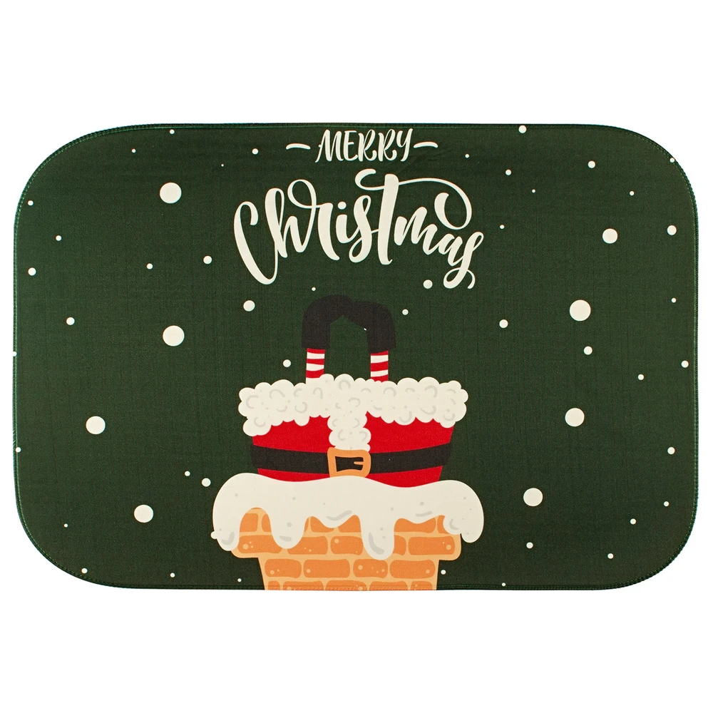 Tapete Para Quarto Estampado Natalino Merry Christmas Verde 60cm x 40cm - Base Antiderrapante