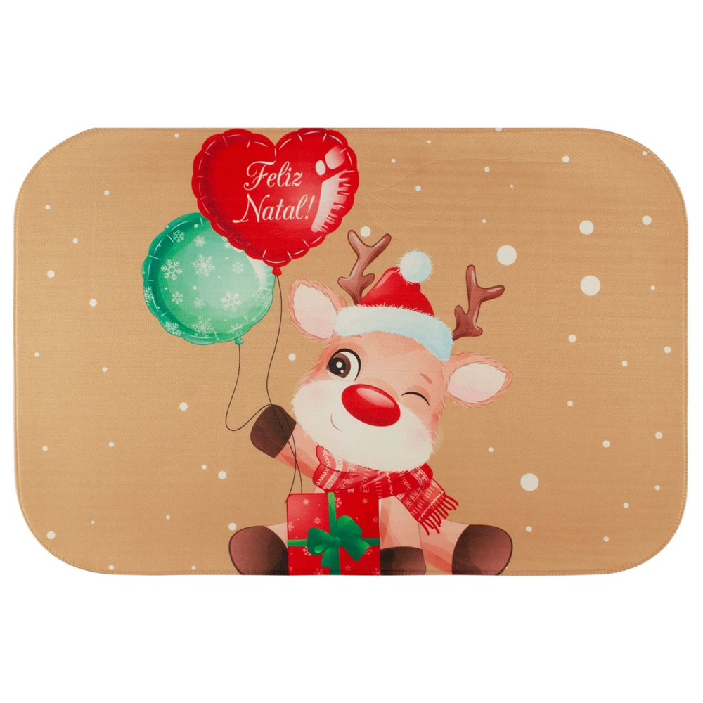 Tapete Para Quarto Estampado Natalino Rena Bege 60cm x 40cm - Base Antiderrapante