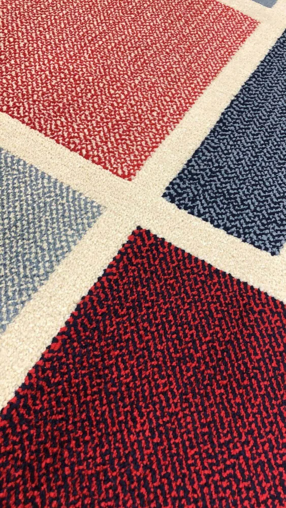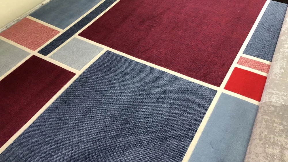 Apresentamos o Tapete 2,50 x 3,50 Pixel D Europeu Forrado Grande Macio, ideal para transformar ambientes com elegância e conforto. Seu design moderno em blocos geométricos nas cores azul, vinho e tons neutros cria um destaque sofisticado para salas amplas.