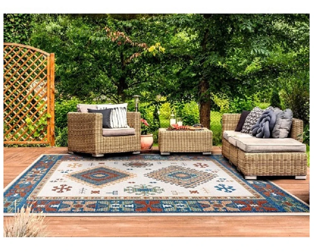 Seu design em sisal sintético outdoor proporciona durabilidade e resistência, perfeito para áreas de alto tráfego.