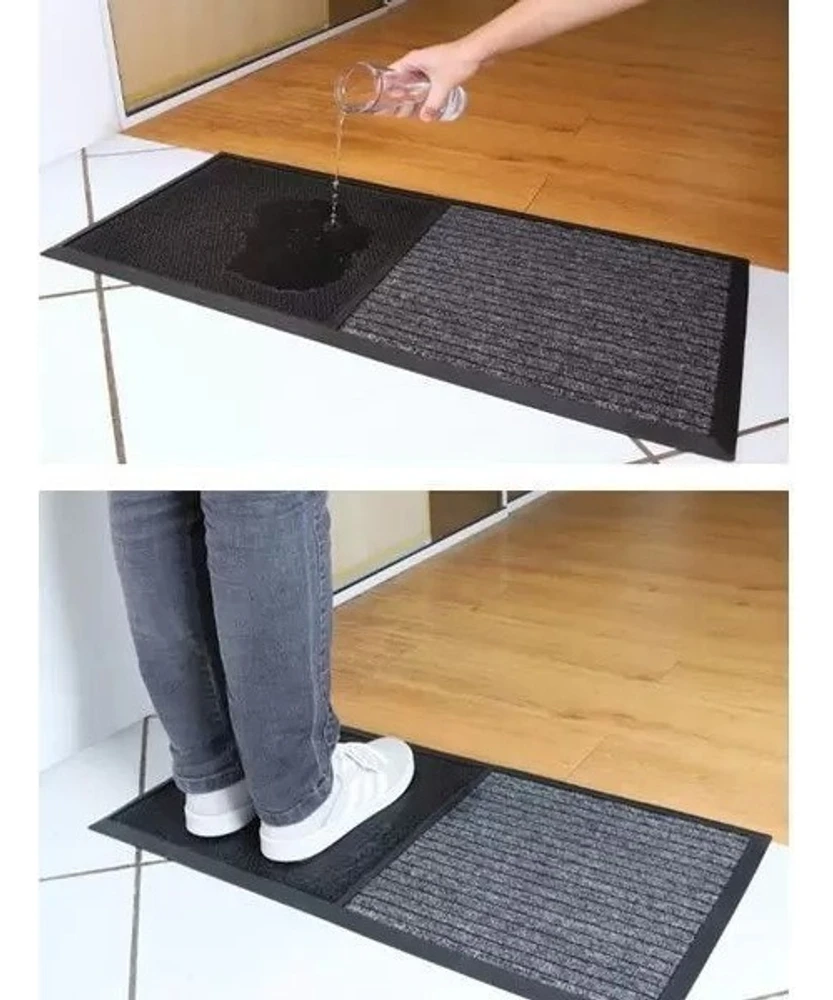 Tapete Sanitizante e Secante - Sistema de Dupla Função 2 em 1 - Grande 70cm x 1,00 MetroSistema de Dupla Função 2 em 1 - De um lado VINIL para utilzar como Sanitizante ou Secante do Outro um Secante de grande Absorção e Alta eficiência na retenção da sujeita, ótimo para dias Chuvosos.Higienizar os calçados é vital para manter vírus e bactérias da porta para fora.Podemos cuidar onde nos encostamos ou no que pegamos. Mas é impossível fazer o mesmo por onde pisamos. Portanto, uma das formas de garantir que o vírus não entrará em sua casa é a sanitização dos calçados.O Tapete Santizante Kapazi é ideal para ser usado em áreas externas, essa opção de tapete é perfeito para entradas de ambientes, ele contém um sistema de dupla função, uma lado é ideal para a higienização que permite aplicar produtos de limpeza como água sanitária, e assim higieniza seus calçados, e o outro lado é para a secagem completa dos seus calçados e deixá-los pronto para entrar no ambiente.Pode ser utilizados por empresas, condomínios, portas de entradas residenciais e comércios em geral, garantindo maior proteção do seu ambiente, pois ele e perfeito para higienização completa dos seus calçados. O Tapete Santizante, protege seus ambientes de vírus e bactérias que venha de fora em seus calçados, contem alta resistência, que vai proporcionar maior segurança e praticidade.Informações Técnicas:- Fabricado em 92% Vinil (PVC) e 8% Polipropileno (Seguro)- Sanitizante;- Secante; 2 em 1 ;- Antichamas (Segurança)- Antivazamento;- Não Mancha;- Antiderrapante;- Borda antiqueda;- Possui borda Alto vedante que impede o vazamento de líquidos;- Lavável;- Durável;- Leve;- Prático;- Customizado- Medidas: 70cm x 1,00 Metro - Tamanho GRANDE- Espessura de 10mm;- Entrega Imediata;Aplicabilidade:- Comércios- Escritórios- Condomínios- Em casaComo usar:Prepare a solução sanitizante (300mL de água + 1 colher de sopa de água sanitária)Coloque o tapete sanitizante 2 em 1 Dupla na área externa de sua casaAplique a solução por toda a superfície do lado sanitizante até ficar totalmente úmidoAo entrar em casa, higienize seu calçado pisando na área sanitizanteApós, utilize a outra metade pare secar as solas, e entre em casa com segurança!Dessa forma, é ainda mais prático manter sua casa, comércio e condomínio em segurança. Em 5 passos simples, você mantém sujeiras, vírus e bactérias para fora de sua casa.