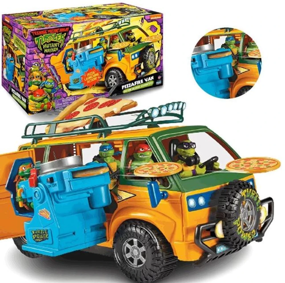 Quando Superfly e todo o seu grupo causam estragos e tentam dominar a cidade, as Tartarugas trazem a grande arma, a Van de Entrega de Pizza - PizzaFire! Como visto no filme As Tartarugas Ninja: o Caos Mutante, a Van de Entrega de Pizza é altamente detalhada e decorada! Além disso, ela dispara discos de pizza e abre na frente e atrás para que todas as quatro Tartarugas - e até Splinter - possam entrar (Vendidos separadamente)!