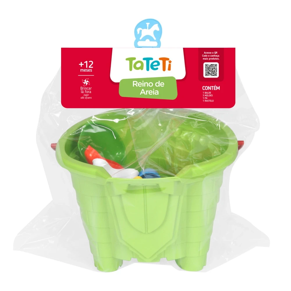 Conteúdo: 1 balde, 1 pá, 1 rastelo e 3 moldes