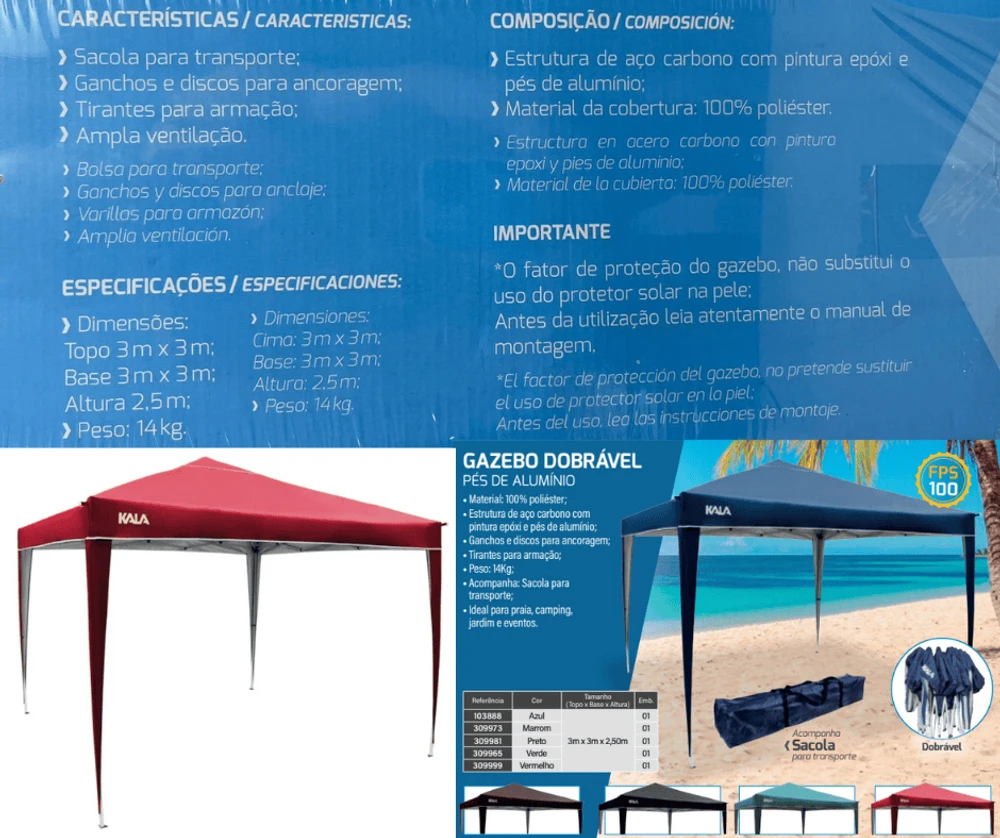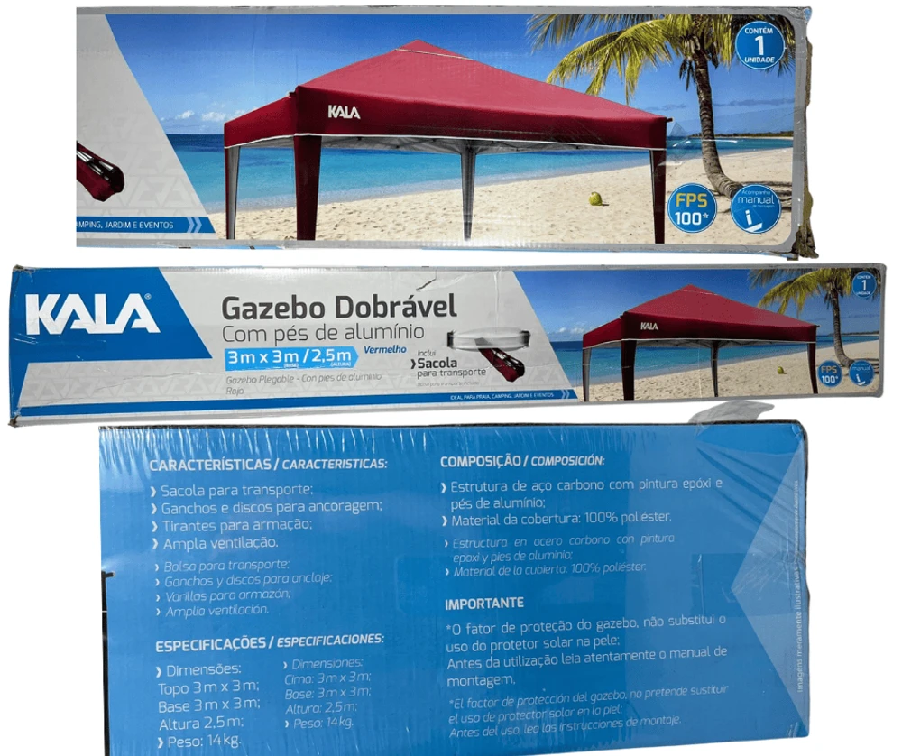• Nome: Gazebo Dobrável Vermelho com Pés de Alumínio 3m x 3m Kala