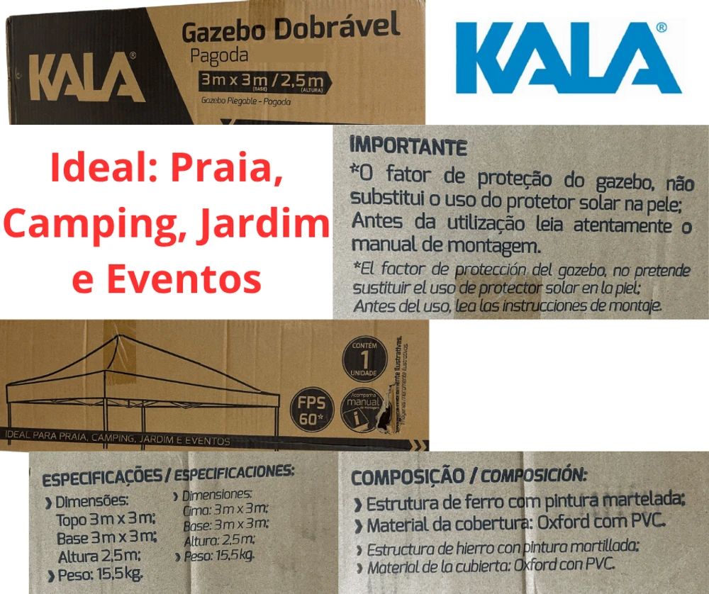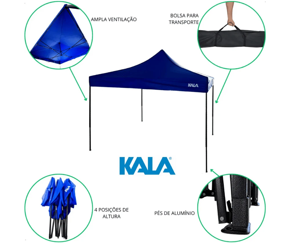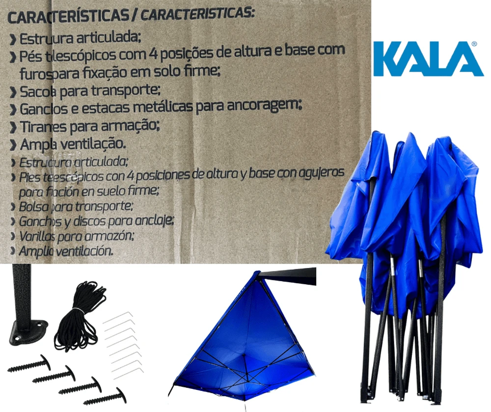 Aprimore seus momentos ao ar livre com o Gazebo Dobrável Pagoda Azul 3 x 3m Kala. Proteção e conforto se unem em um design prático e versátil, ideal para diversas atividades externas. Eleve sua experiência outdoor com o Gazebo Dobrável Pagoda Azul 3 x 3m Kala. Este gazebo é a solução perfeita para proteger e desfrutar de momentos agradáveis em ambientes externos.