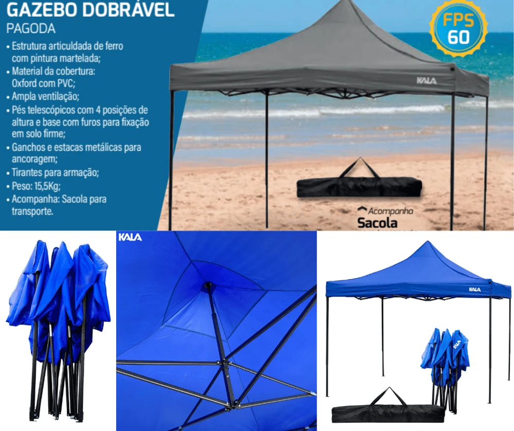 Nome: Gazebo Dobrável Pagoda Azul 3 x 3m Kala