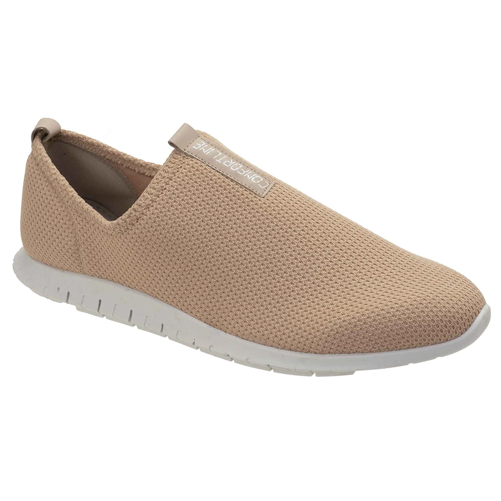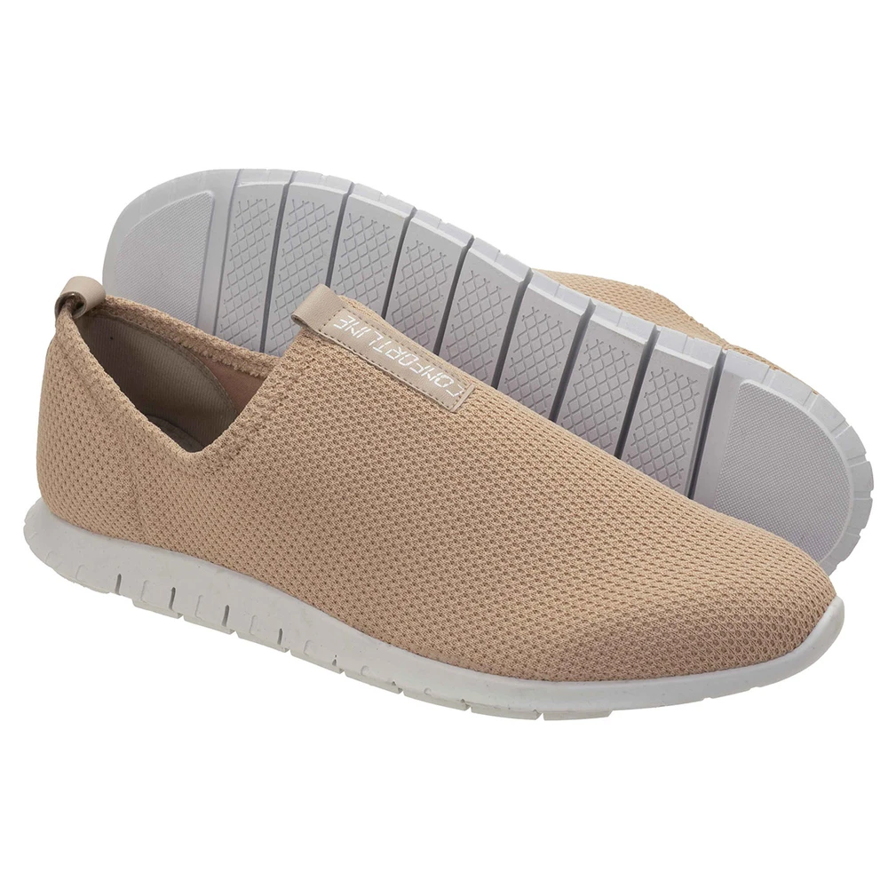 Tênis em couro ecológico e tecido com solado em borracha antiderrapante.