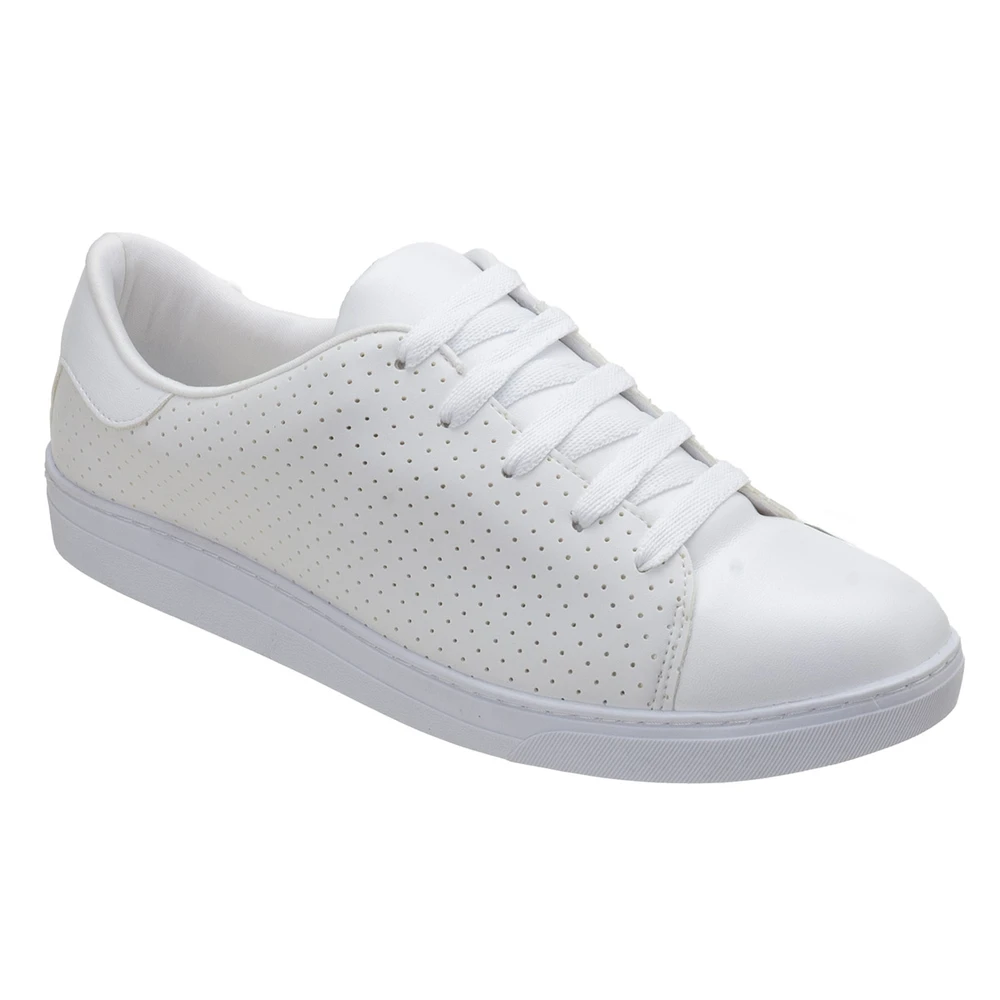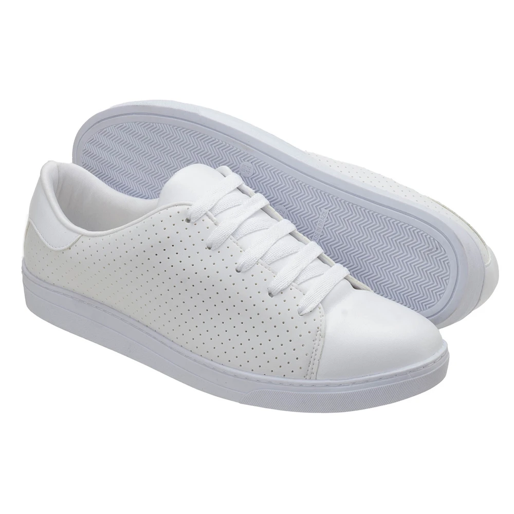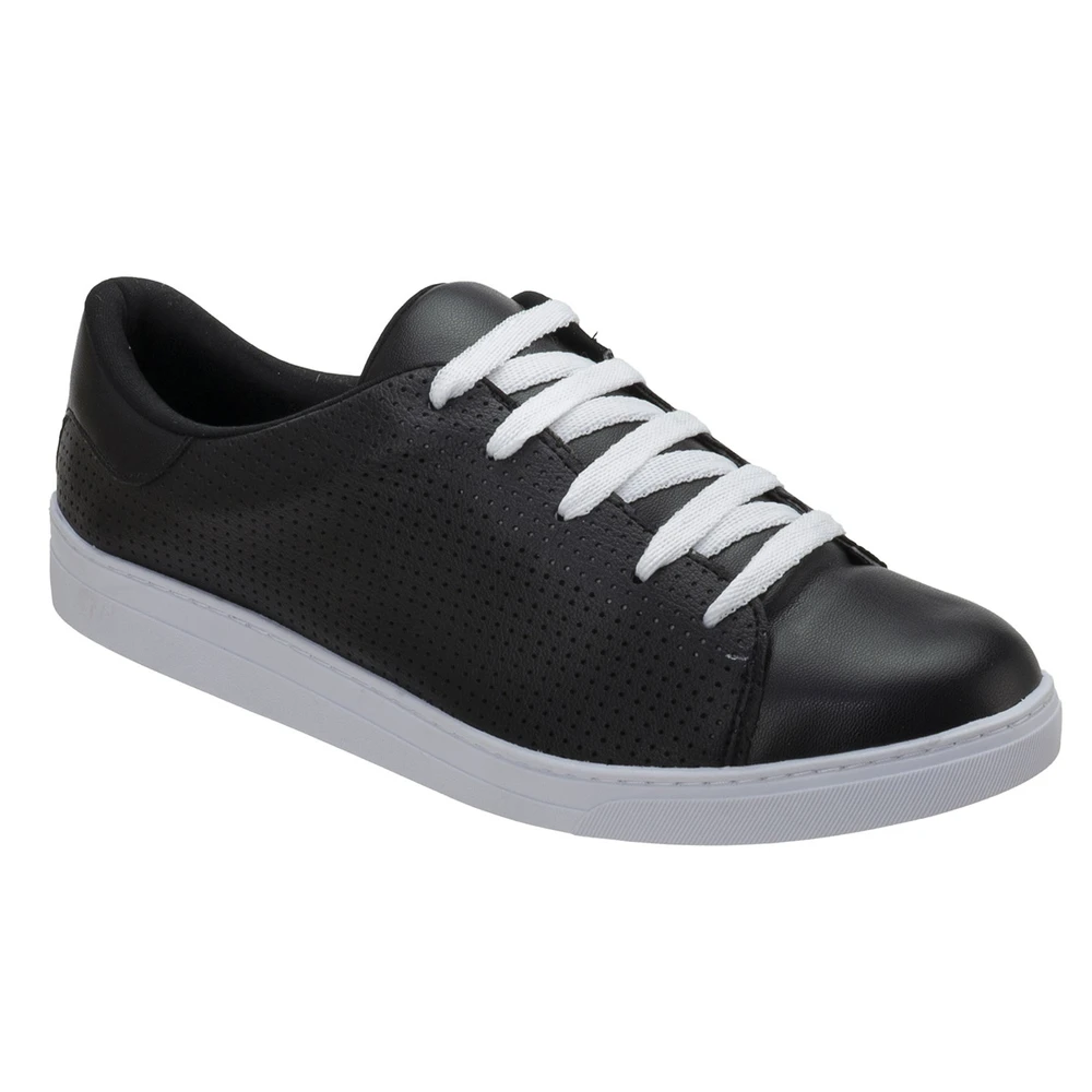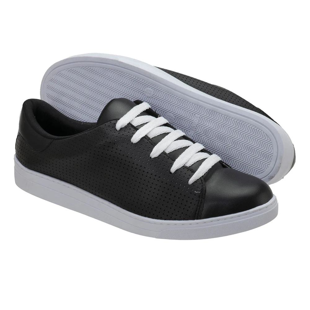 Tênis em couro ecológico com solado em borracha antiderrapante.