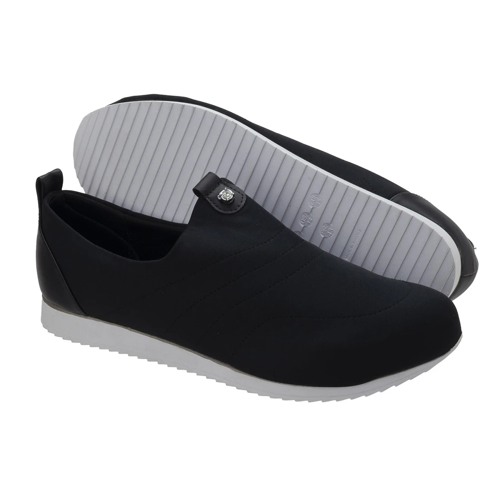 Tênis em tecido com solado em borracha antiderrapante, muito confortável e versátil.