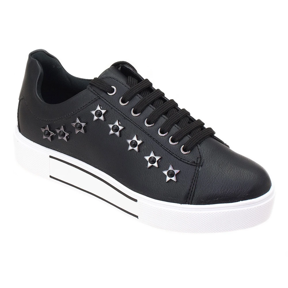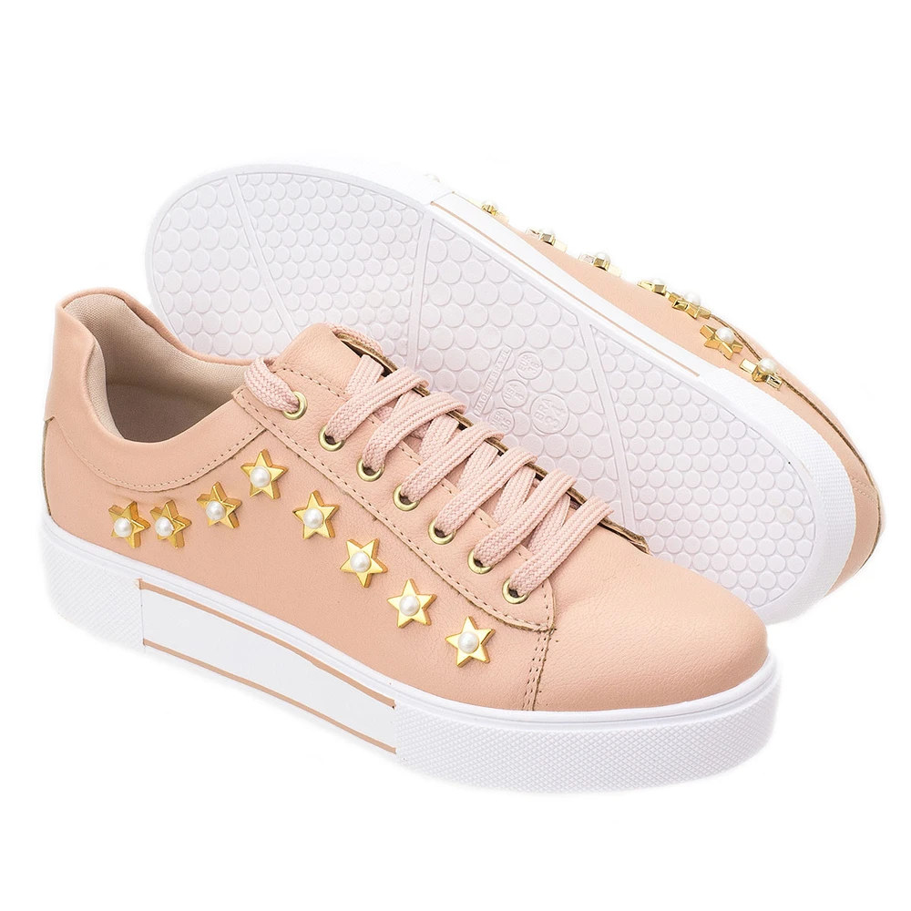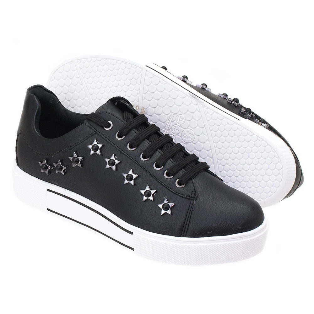 Tênis em couro ecológico com solado em borracha antiderrapante, muito confortável e versátil.