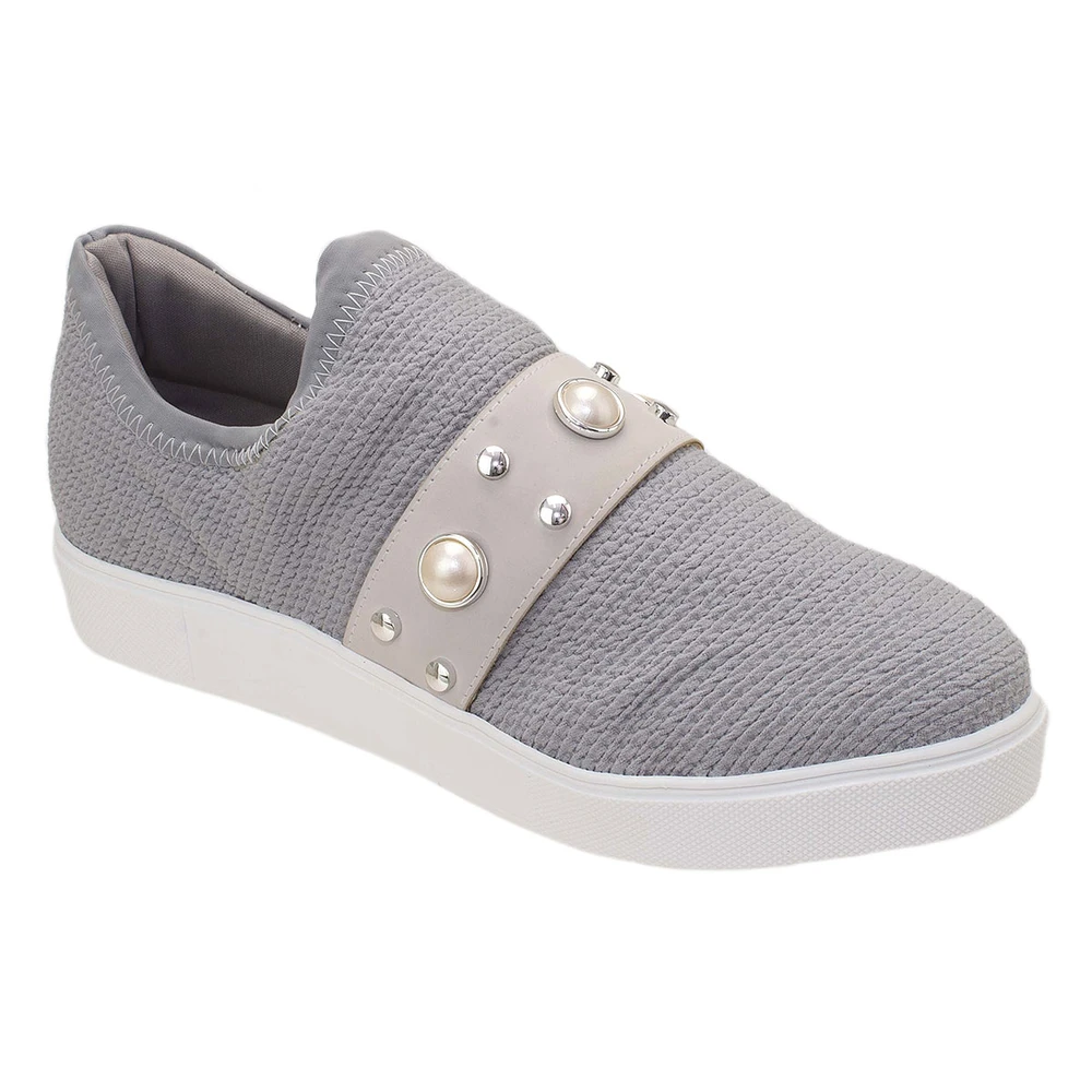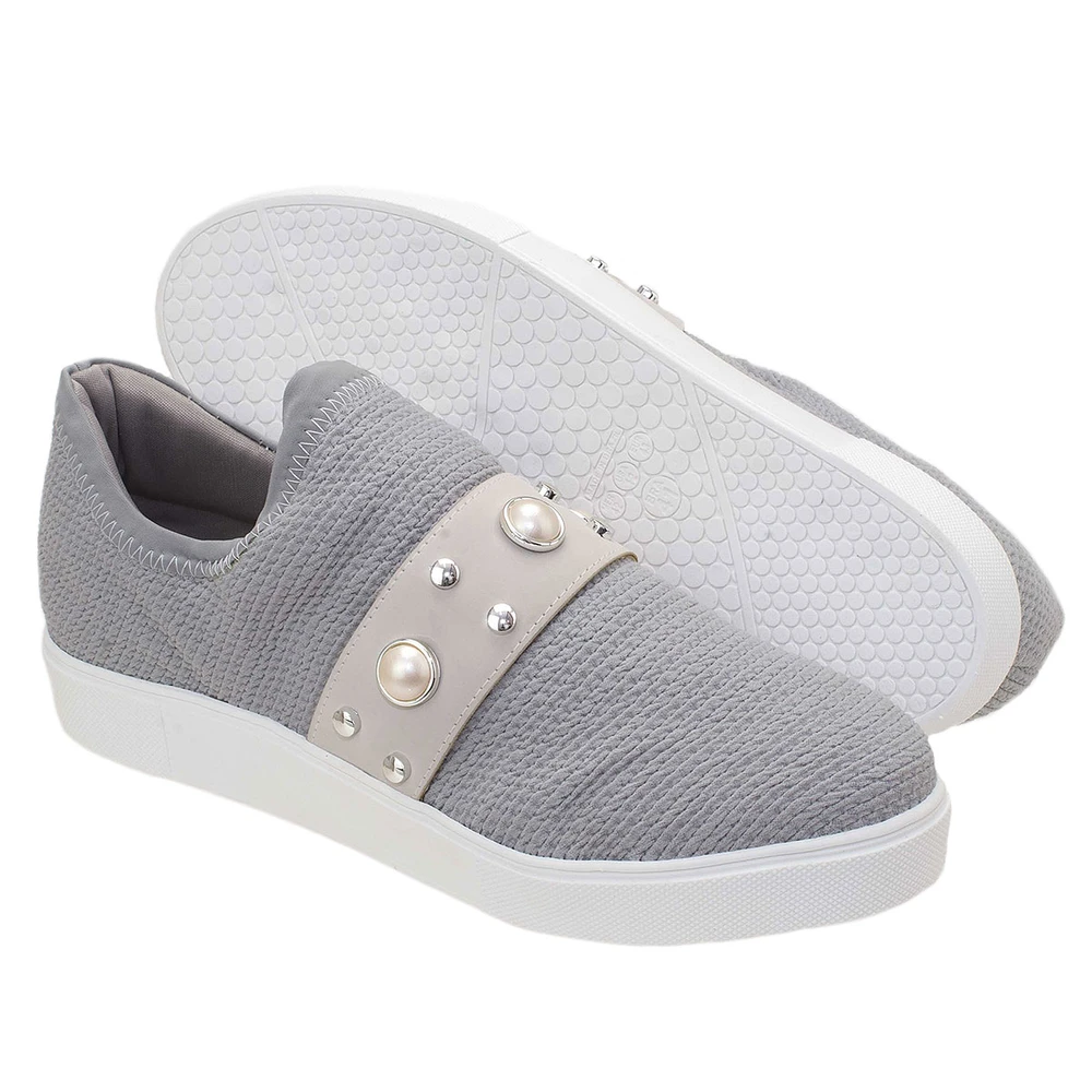 Tênis em tecido com cadarço. Com solado em borracha antiderrapante, muito confortável e versátil. Possui um solado de 2,5cm de altura