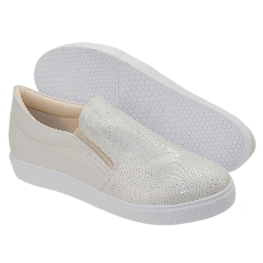 Tênis em laminado sintético, com solado em borracha antiderrapante, muito confortável e versátil. Possui um solado de 2,5cm de altura