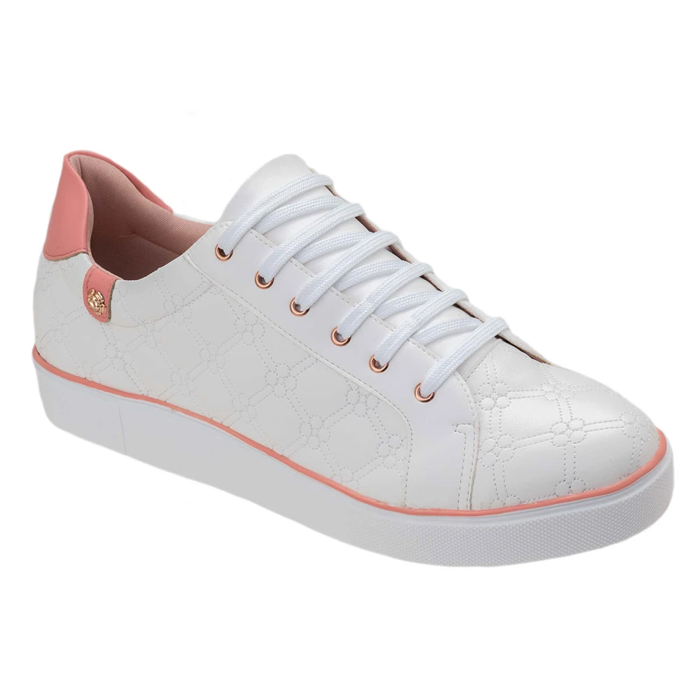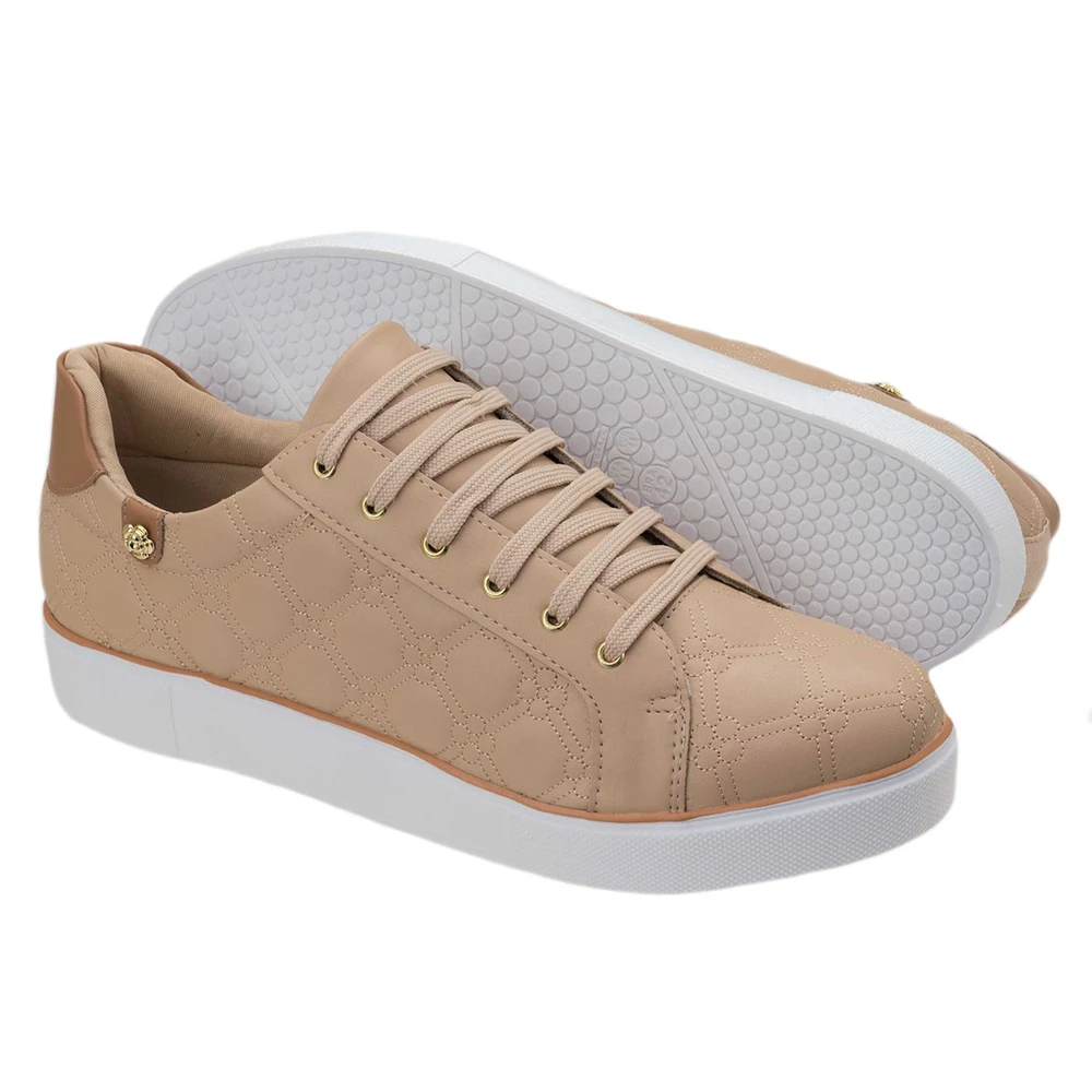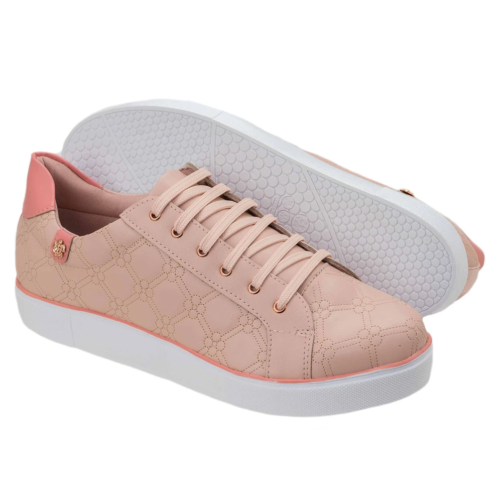 Tênis em laminado sintético, com solado em borracha antiderrapante, muito confortável e versátil. Possui um solado de 2,5cm de altura