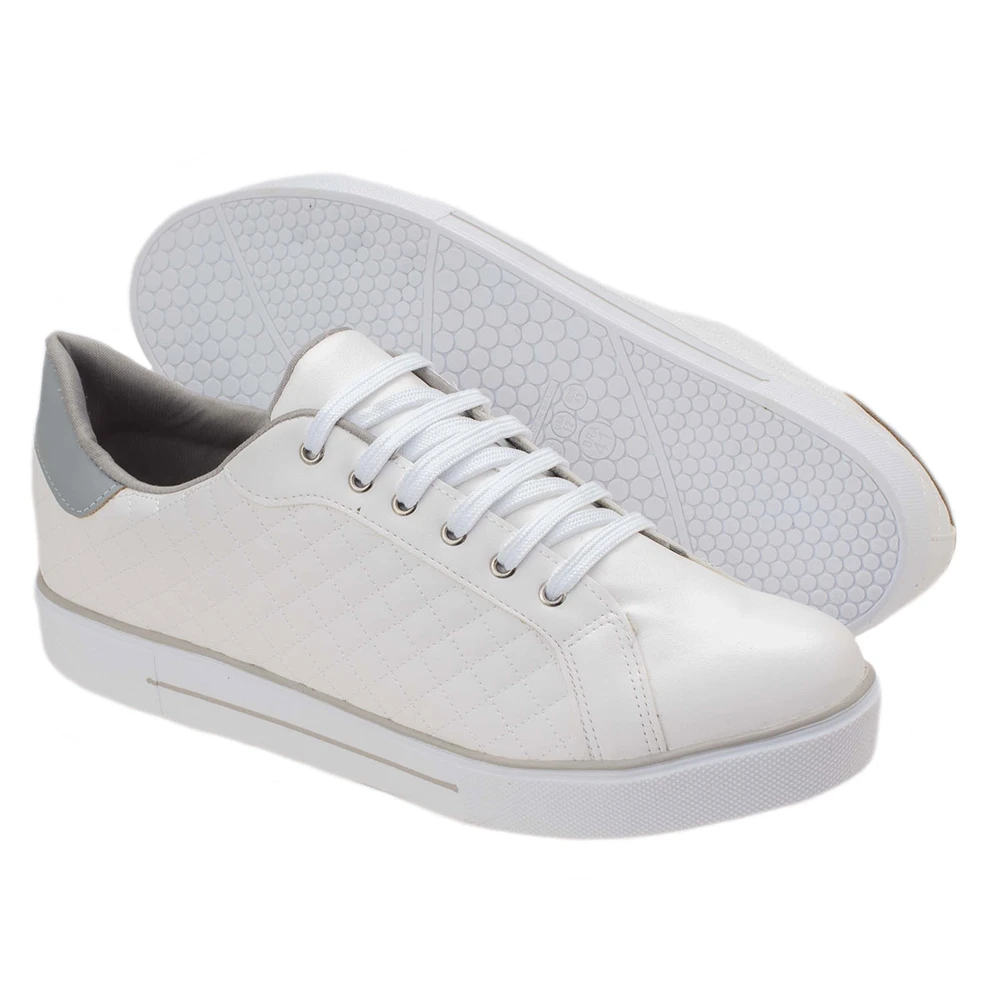 Tênis em laminado sintético, com solado em borracha antiderrapante, muito confortável e versátil. Possui um solado de 2,5cm de altura