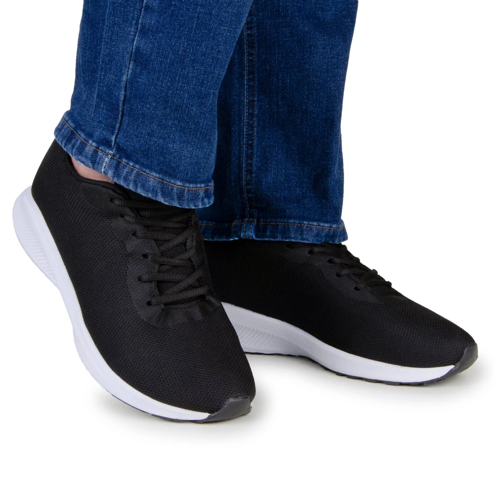 O Tênis Aria é a definição de conforto elevado à elegância. Criado para quem prefere um visual esportivo e versátil, ele entrega até +7 cm de altura com uma naturalidade impressionante. Com linhas aerodinâmicas e design dinâmico, o Aria foi pensado para acompanhar o ritmo de quem vive em movimento, com leveza, confiança e estilo impecável. Seu cabedal em nylon tecnológico respirável oferece mobilidade e frescor em cada passo. O solado emborrachado antiderrapante garante estabilidade e tração firme, enquanto a tecnologia interna de elevação inteligente proporciona postura ereta e conforto contínuo ao longo do dia. Do casual urbano ao esportivo moderno, o Aria transita com naturalidade entre estilos, sem perder sua essência: discrição por fora, imponência por dentro. Cores disponíveis: Preto e Cinza Estilo: Esportivo casual com pegada minimalista Altura extra: +7 cm de elevação interna discreta e natural Ideal para: Aqueles que valorizam conforto, leveza e confiança autêntica em todos os momentos. Ficha técnica:Tipo de calçado: EsportivoSegmento: PadrãoMateriais do cabedal: NylonTipo de solado: Borracha sintéticaTipo de fechamento: Cadarço redondoImpermeabilidade: Não impermeávelFormato do bico: Bico arredondadoFundada com paixão por calçados inovadores, a Eleva Calçados revolucionou o mercado de sapatos com elevação criando calçados que aumentam a altura, combinando estilo, conforto e discrição. Nossa equipe de artesãos e engenheiros talentosos trabalha incansavelmente para desenvolver sapatos com tecnologia de elevação oculta que adiciona 5-10 cm de altura sem comprometer o conforto ou a estética. Utilizamos os melhores materiais e empregamos técnicas tradicionais junto com tecnologia de ponta para criar o sapato com elevação perfeito. Na Eleva, acreditamos que a confiança começa dos pés para cima. Nosso compromisso com a qualidade e atenção aos detalhes garante que cada par de sapatos Eleva dê a você mais altura, literal e figurativamente.