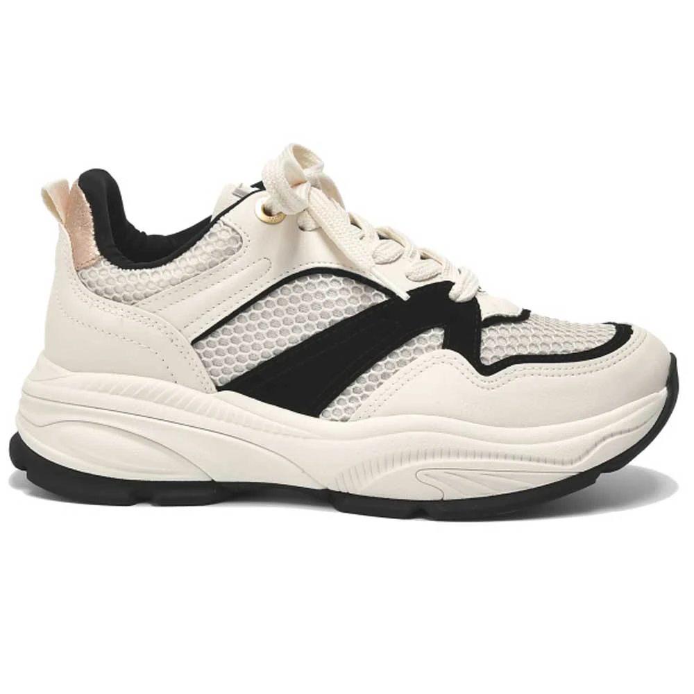 Tênis Casual Feminino Marfim Preto Bege Via Marte 135-002-06