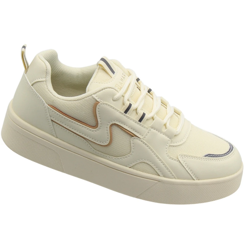 Confeccionado em material sintético de alta qualidade, o cabedal oferece durabilidade e fácil manutenção. O interior têxtil macio garante conforto prolongado, enquanto a palmilha em EVA proporciona amortecimento eficiente a cada passo. O fechamento por cadarço permite um ajuste personalizado e seguro