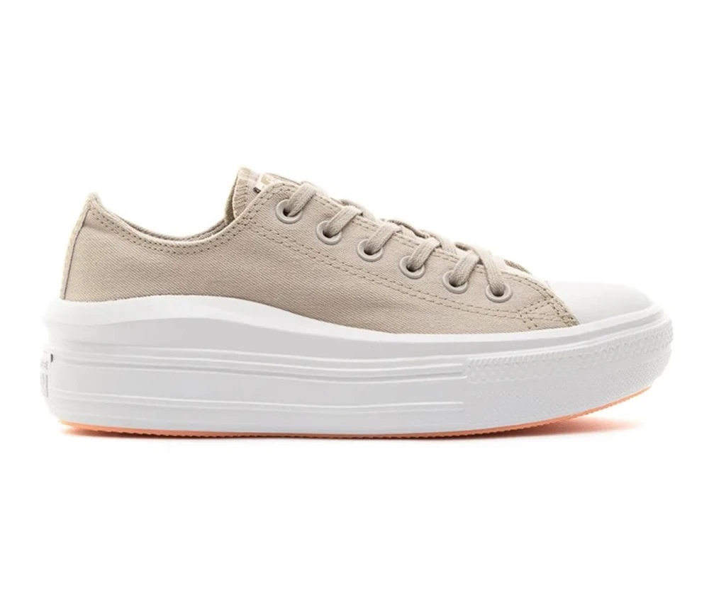O All Star Move é construído sobre uma sola plataforma ultra-leve e confeccionado em tecido canvas de algodão tipo lona. O modelo possui costuras duplas e borracha contrastando com o tecido. Para complementar o conforto, o calçado possui palmilhas em PU feitas com Die-Cut, unidas ao solado plataforma com aproximadamente 5cm de altura (podendo variar conforme o tamanho do tênis) estilo cupsole, feito em EVA, que garante um conforto levíssimo. Tudo isso com a assinatura Converse All Star na língua em material metálico e no Heel Logo aplicada no calcanhar, junto com uma tira em material metálico.