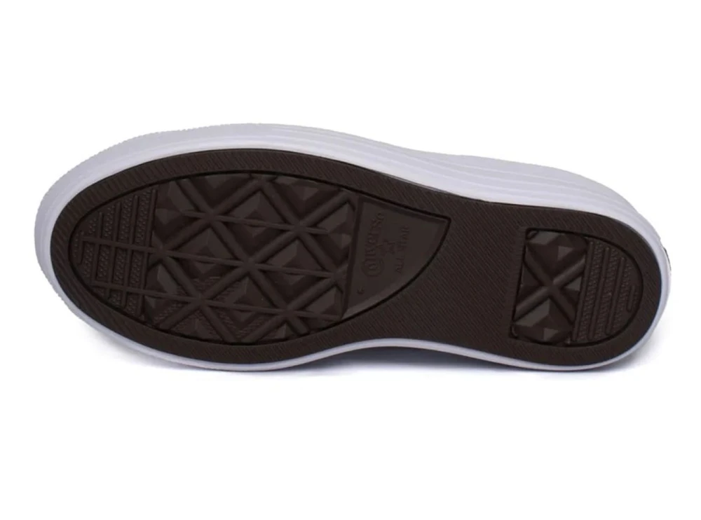 O All Star Move é construído sobre uma sola plataforma ultra-leve e confeccionado em tecido canvas de algodão tipo lona. O modelo possui costuras duplas e borracha contrastando com o tecido. Para complementar o conforto, o calçado possui palmilhas em PU feitas com Die-Cut, unidas ao solado plataforma com aproximadamente 5cm de altura (podendo variar conforme o tamanho do tênis) estilo cupsole, feito em EVA, que garante um conforto levíssimo. Tudo isso com a assinatura Converse All Star na língua em material metálico e no Heel Logo aplicada no calcanhar, junto com uma tira em material metálico.
