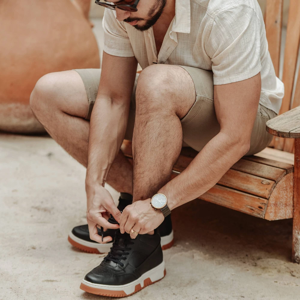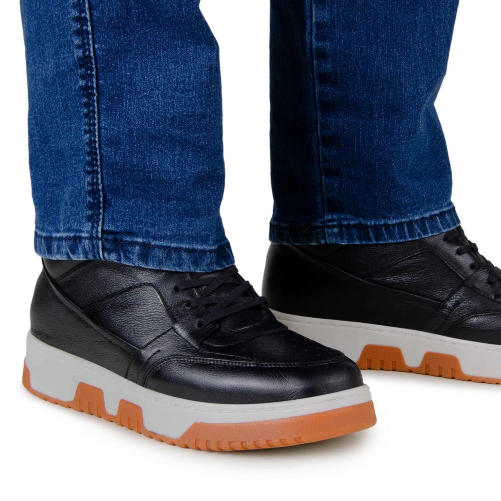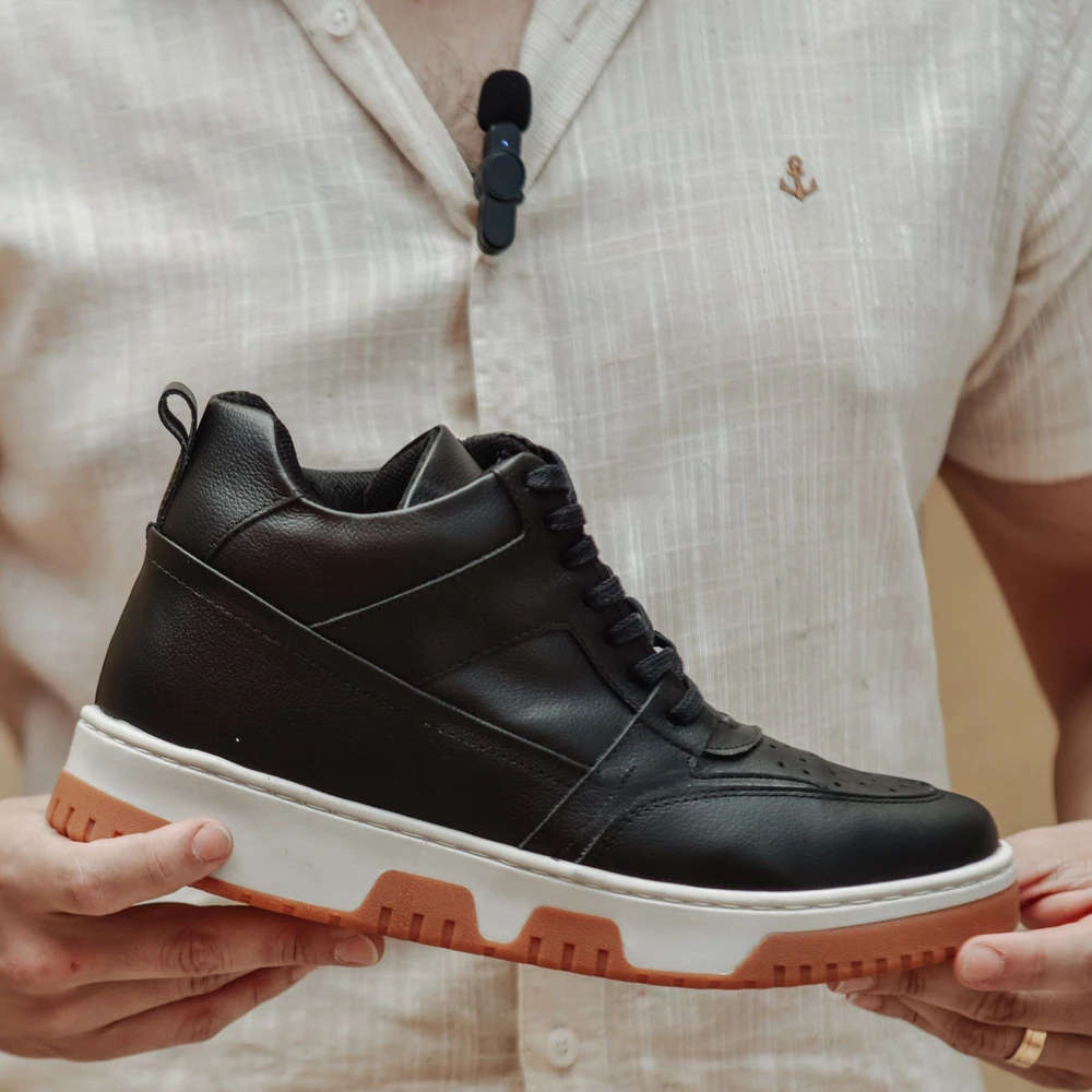 Eleve sua presença com o Tênis Court, desenvolvido para quem busca estilo, conforto e um ganho de altura discreto. Com design robusto e moderno, esse modelo proporciona 10 cm de altura, graças à sua tecnologia interna de elevação inteligente, que mantém total naturalidade nos movimentos. Confeccionado em material premium de alta durabilidade, o Court entrega conforto prolongado e excelente ajuste anatômico para o uso diário. A sola emborrachada garante aderência firme e segurança em cada passo, unindo performance e sofisticação em um visual de presença marcante. Cores disponíveis: Preto e Branco Estilo: Casual esportivo com inspiração no basquete urbano Altura extra: +10 cm de forma discreta e natural Ideal para: Quem quer crescer com confiança e estilo, sem abrir mão do conforto. O Tênis Court é a escolha perfeita para quem busca estilo, conforto e discrição no aumento de altura. Inspirado no streetwear contemporâneo e no universo do basquete urbano, ele combina linhas imponentes e design versátil, ideal para jeans, joggers e looks casuais com jaquetas ou camisetas oversized. Por dentro, sua tecnologia de palmilha elevada proporciona até +10 cm de altura adicional de forma imperceptível, mantendo a estabilidade e o conforto mesmo após longas horas de uso. Mais do que um tênis, o Court representa confiança silenciosa, o equilíbrio entre postura, estilo e presença que diferencia quem apenas se veste de quem realmente se eleva. Ficha técnica:Tipo de calçado: CasualSegmento: PadrãoMateriais do cabedal: Couro lisoTipo de solado: Borracha naturalTipo de fechamento: Cadarço enceradoImpermeabilidade: Não impermeávelFormato do bico: RedondaFundada com paixão por calçados inovadores, a Eleva Calçados revolucionou o mercado de sapatos com elevação criando calçados que aumentam a altura, combinando estilo, conforto e discrição. Nossa equipe de artesãos e engenheiros talentosos trabalha incansavelmente para desenvolver sapatos com tecnologia de elevação oculta que adiciona 5-10 cm de altura sem comprometer o conforto ou a estética. Utilizamos os melhores materiais e empregamos técnicas tradicionais junto com tecnologia de ponta para criar o sapato com elevação perfeito. Na Eleva, acreditamos que a confiança começa dos pés para cima. Nosso compromisso com a qualidade e atenção aos detalhes garante que cada par de sapatos Eleva dê a você mais altura, literal e figurativamente.