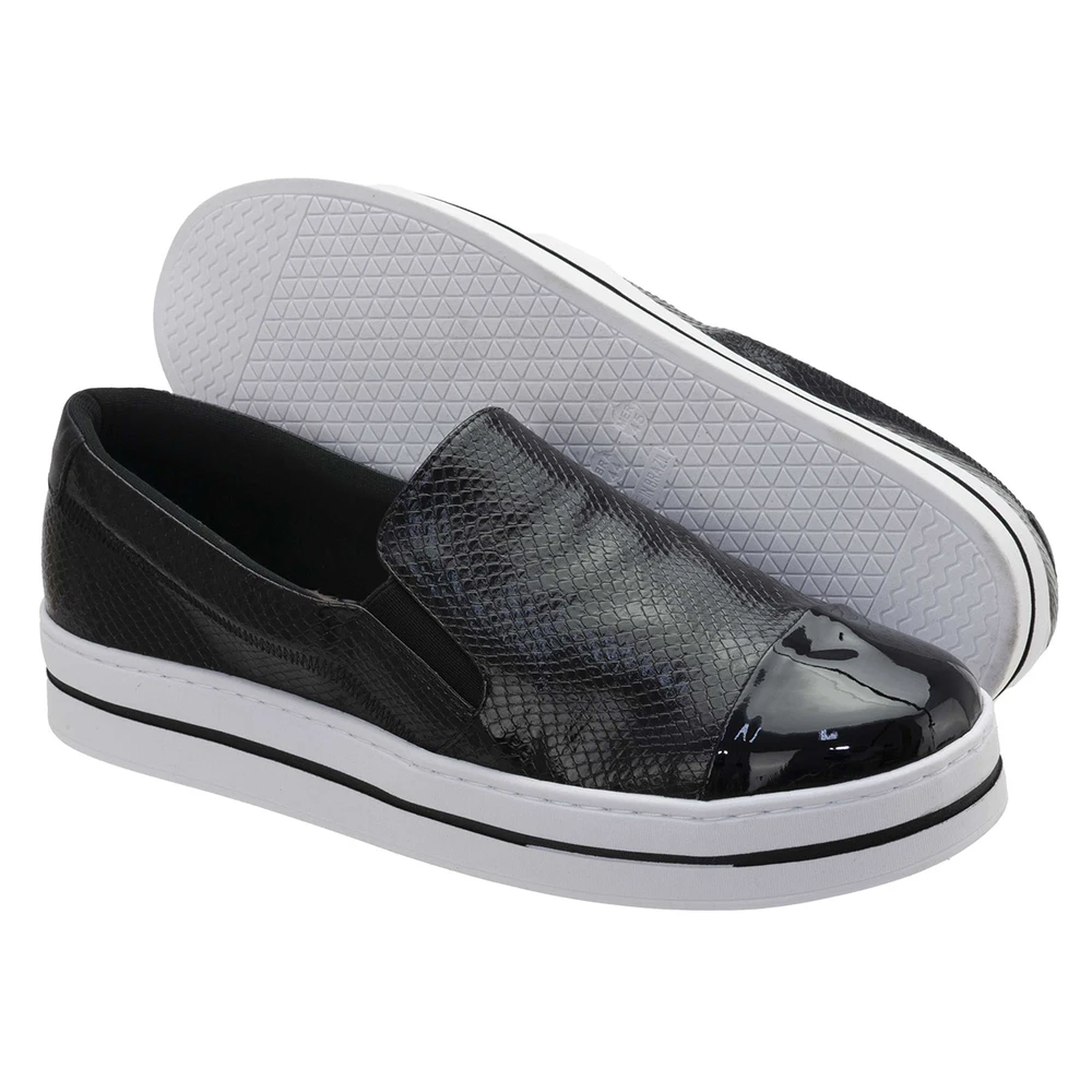 Tênis em laminado sintético com solado em borracha antiderrapante.