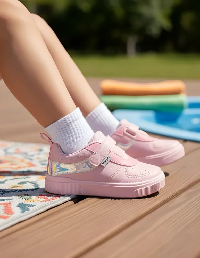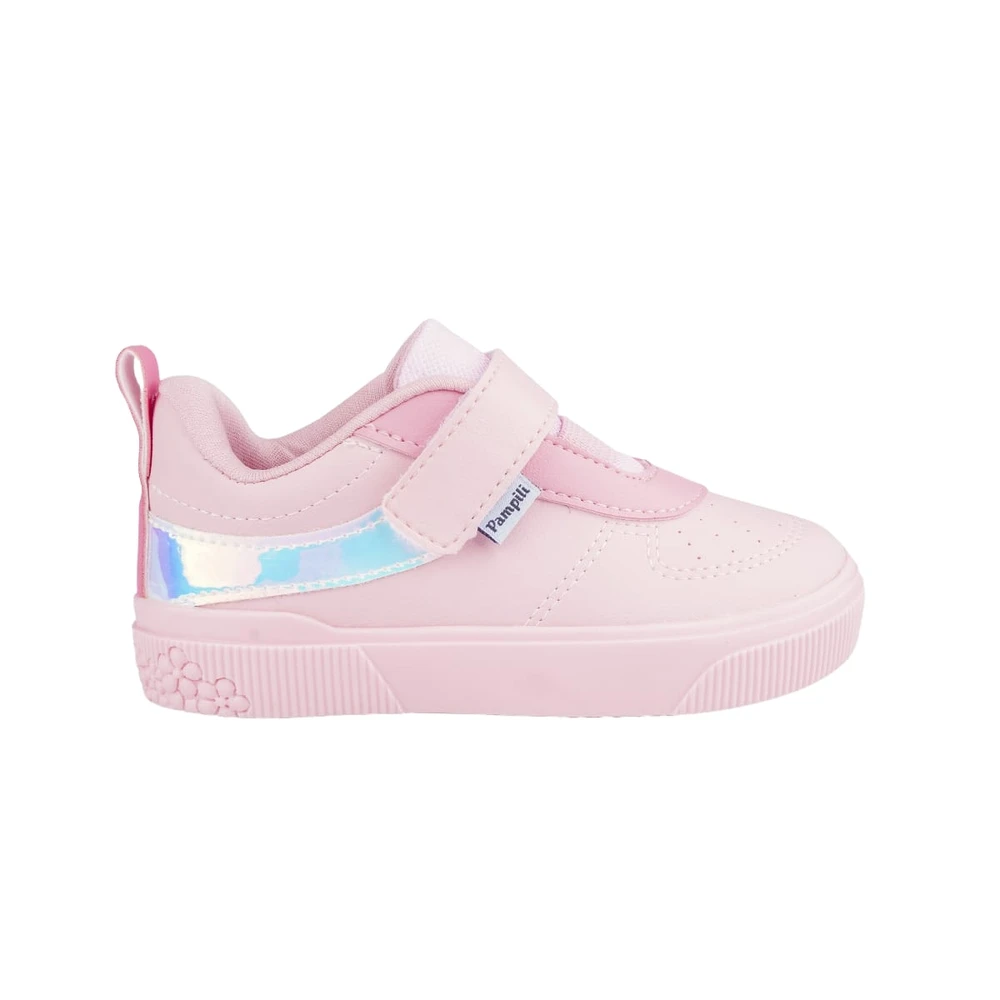 Encantador e cheio de conforto, esse sapato infantil rosa combina delicadeza e funcionalidade para o dia a dia das pequenas. Seu design com faixas laterais holográficas e um solado floral, traz um toque charmoso, enquanto os perfuros na parte da frente do tênis garantem ventilação extra para manter os pezinhos fresquinhos.