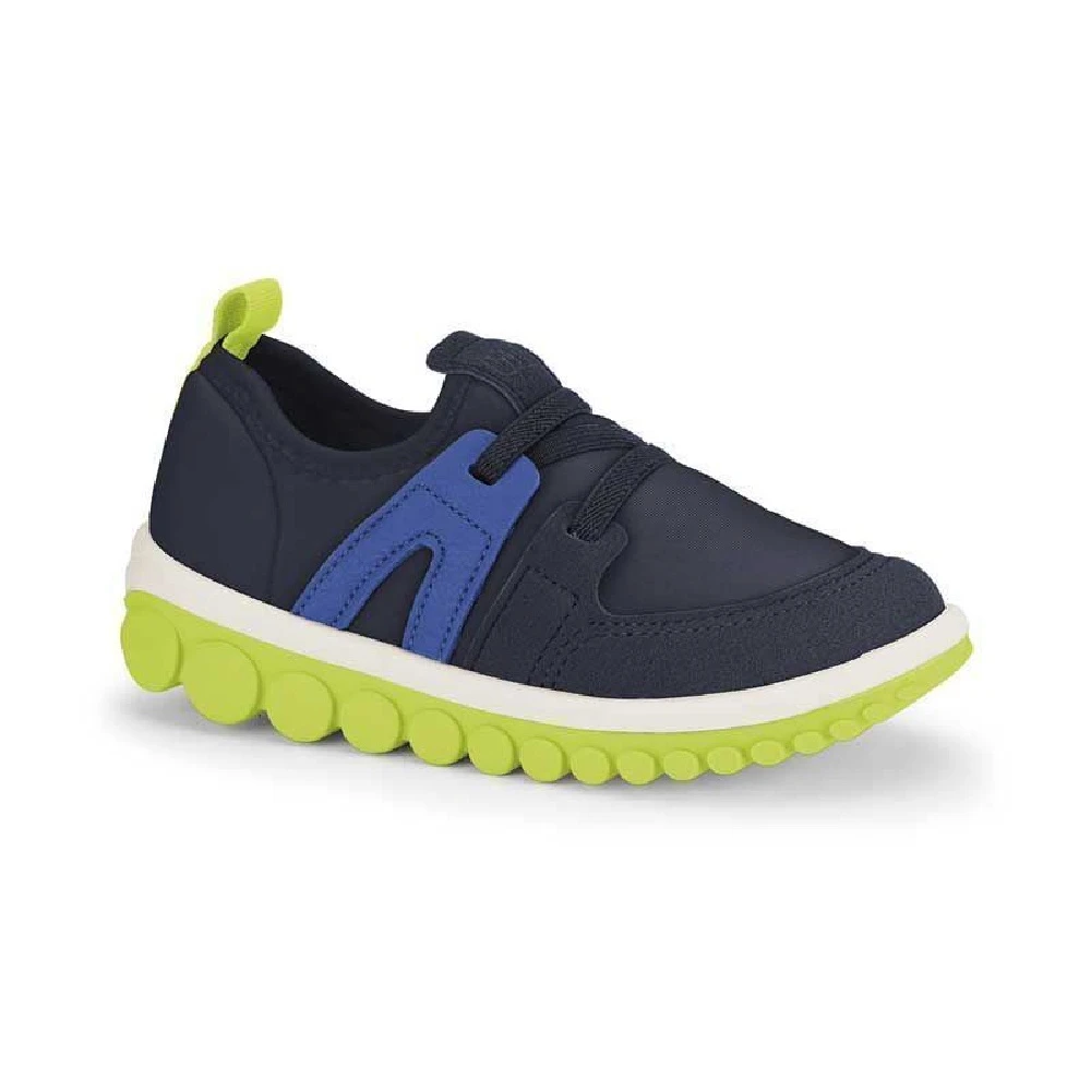 Nosso modelo apresenta um design moderno, ideal para acompanhar as crianças em todas as suas aventuras. Confeccionado em elastano, um material respirável e de fácil limpeza. Este tênis oferece um ajuste excelente ao pé, garantindo conforto durante todo o uso. O solado inovador com rolamentos segue os movimentos do pé, oferecendo um design ainda mais atual e criativo. Possui a palmilha Fisioflex, que é macia e proporciona a sensação de andar descalço, assegurando conforto extremo para as crianças.