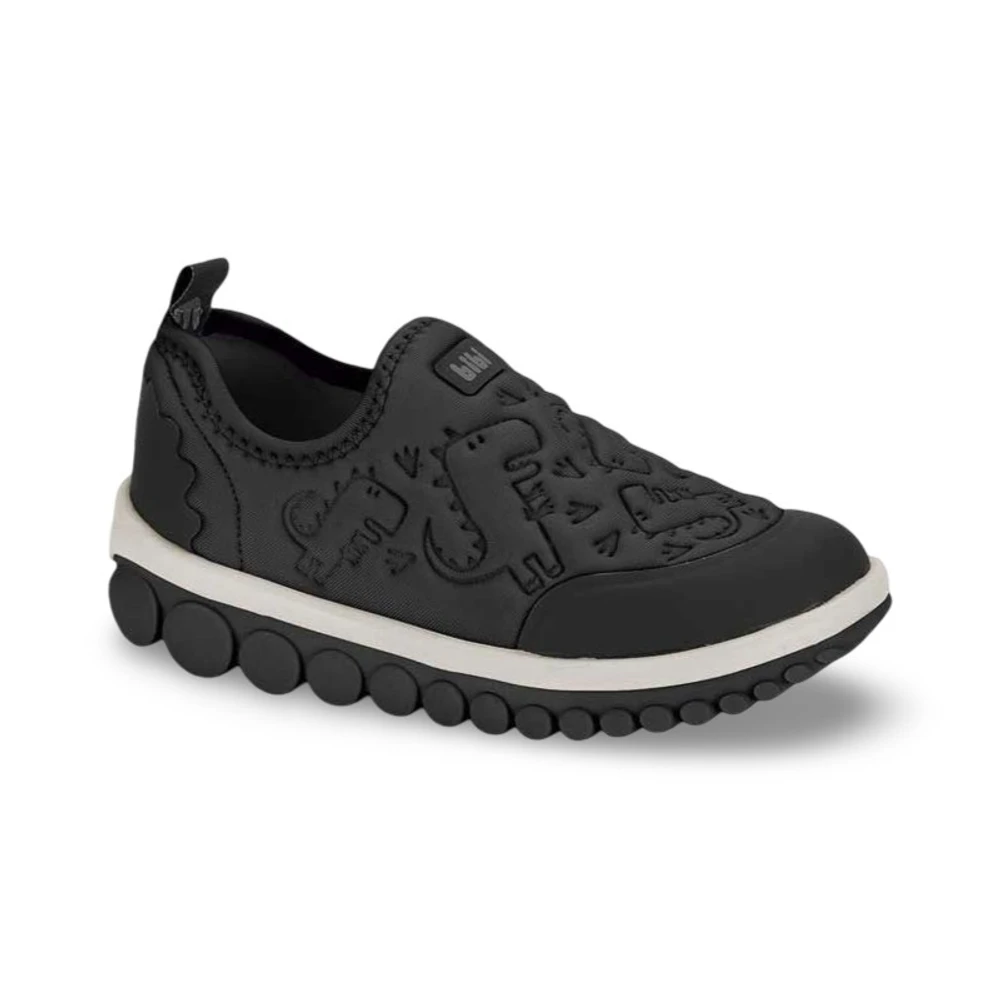 Nosso modelo na cor preta, com detalhes em relevo de dinossauro, apresenta um design moderno, ideal para acompanhar as crianças em todas as suas aventuras. Confeccionado em elastano, um material respirável e de fácil limpeza. Este tênis oferece um ajuste excelente ao pé, garantindo conforto durante todo o uso. O solado inovador com rolamentos segue os movimentos do pé, oferecendo um design ainda mais atual e criativo. Possui a palmilha Fisioflex, que é macia e proporciona a sensação de andar descalço, assegurando conforto extremo para as crianças.
