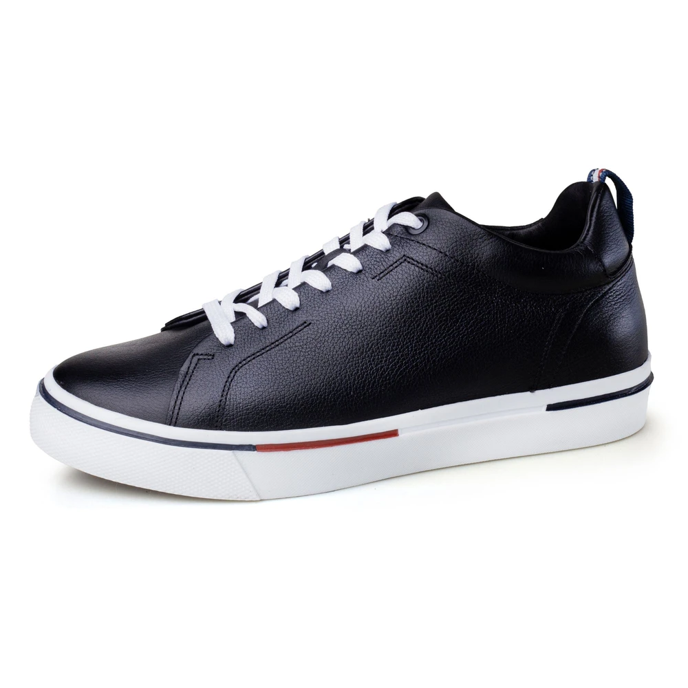 O Tênis Lorenzo foi feito para homens que preferem o poder da sutileza à ostentação. Confeccionado em couro legítimo premium, traz textura refinada, toque suave e acabamento artesanal que expressam sofisticação em cada detalhe. O interior em PU macio e o solado leve em borracha garantem amortecimento e estabilidade, oferecendo conforto absoluto durante todo o dia. Seu principal diferencial é a elevação de 8 cm, que aumenta a altura de forma discreta, melhorando a postura e reforçando a confiança do usuário. Com design clean e sofisticado, o Lorenzo é extremamente versátil: combina com camisetas, camisas jeans, jaquetas ou blazers e veste muito bem com calças jeans, sarja ou até alfaiataria. Disponível na cor preta, é ideal para diferentes ocasiões, de reuniões de trabalho e eventos sociais a produções casuais e urbanas. Um tênis prático, elegante e indispensável no guarda-roupa masculino. Ficha técnica:Tipo de calçado: CasualSegmento: PadrãoMateriais do cabedal: Couro lisoTipo de solado: Borracha sintéticaTipo de fechamento: Cadarço padrãoImpermeabilidade: Não impermeávelFormato do bico: Bico arredondadoAltura da palmilha: 3.5 cmFundada com paixão por calçados inovadores, a Eleva Calçados revolucionou o mercado de sapatos com elevação criando calçados que aumentam a altura, combinando estilo, conforto e discrição. Nossa equipe de artesãos e engenheiros talentosos trabalha incansavelmente para desenvolver sapatos com tecnologia de elevação oculta que adiciona 5-10 cm de altura sem comprometer o conforto ou a estética. Utilizamos os melhores materiais e empregamos técnicas tradicionais junto com tecnologia de ponta para criar o sapato com elevação perfeito. Na Eleva, acreditamos que a confiança começa dos pés para cima. Nosso compromisso com a qualidade e atenção aos detalhes garante que cada par de sapatos Eleva dê a você mais altura, literal e figurativamente.