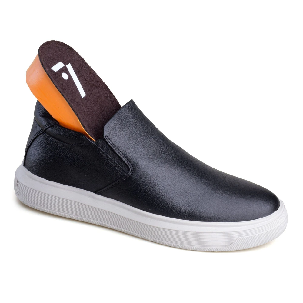 O Tênis Viccari foi feito para quem valoriza elegância, conforto e praticidade no dia a dia. Com design slip-on, sem cadarço, ele calça fácil e entrega um visual limpo e moderno, perfeito para quem quer estar bem vestido sem perder tempo. Feito em couro legítimo, o Viccari une resistência e conforto com acabamento de alto padrão. A palmilha de elevação interna adiciona até +8 cm de altura de forma discreta e natural, melhorando a postura e reforçando a confiança a cada passo. Disponível na cor preto, o Viccari é versátil e fácil de combinar: vai bem com camisetas, camisas jeans ou suéteres, criando composições casuais com um toque refinado. Ideal para momentos de lazer, dias corridos ou ambientes mais arrumados, também funciona perfeitamente com bermudas, jeans ou calças de sarja. Um tênis minimalista, confortável e cheio de estilo, feito para acompanhar você em qualquer ocasião com elegância e praticidade. Ficha técnica: