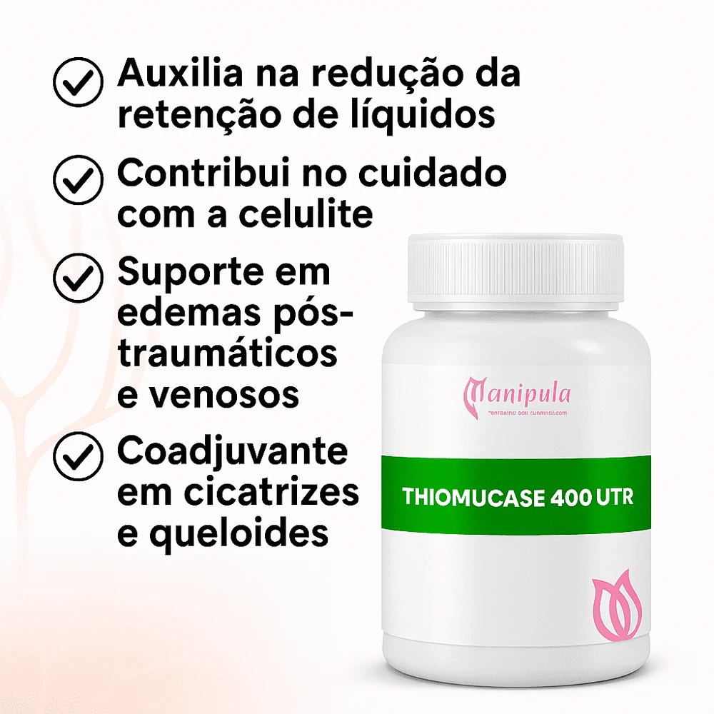 A Thiomucase é uma enzima de difusão (mucopolissacaridase) utilizada tradicionalmente como suporte em quadros de retenção de líquidos, edemas e distúrbios do tecido conjuntivo. Atua na despolimerização dos mucopolissacarídeos, favorecendo a difusão de líquidos e nutrientes nos tecidos. É também reconhecida por auxiliar no cuidado com a celulite, cicatrizes, queloides e em edemas pós-traumáticos ou pós-flebíticos.