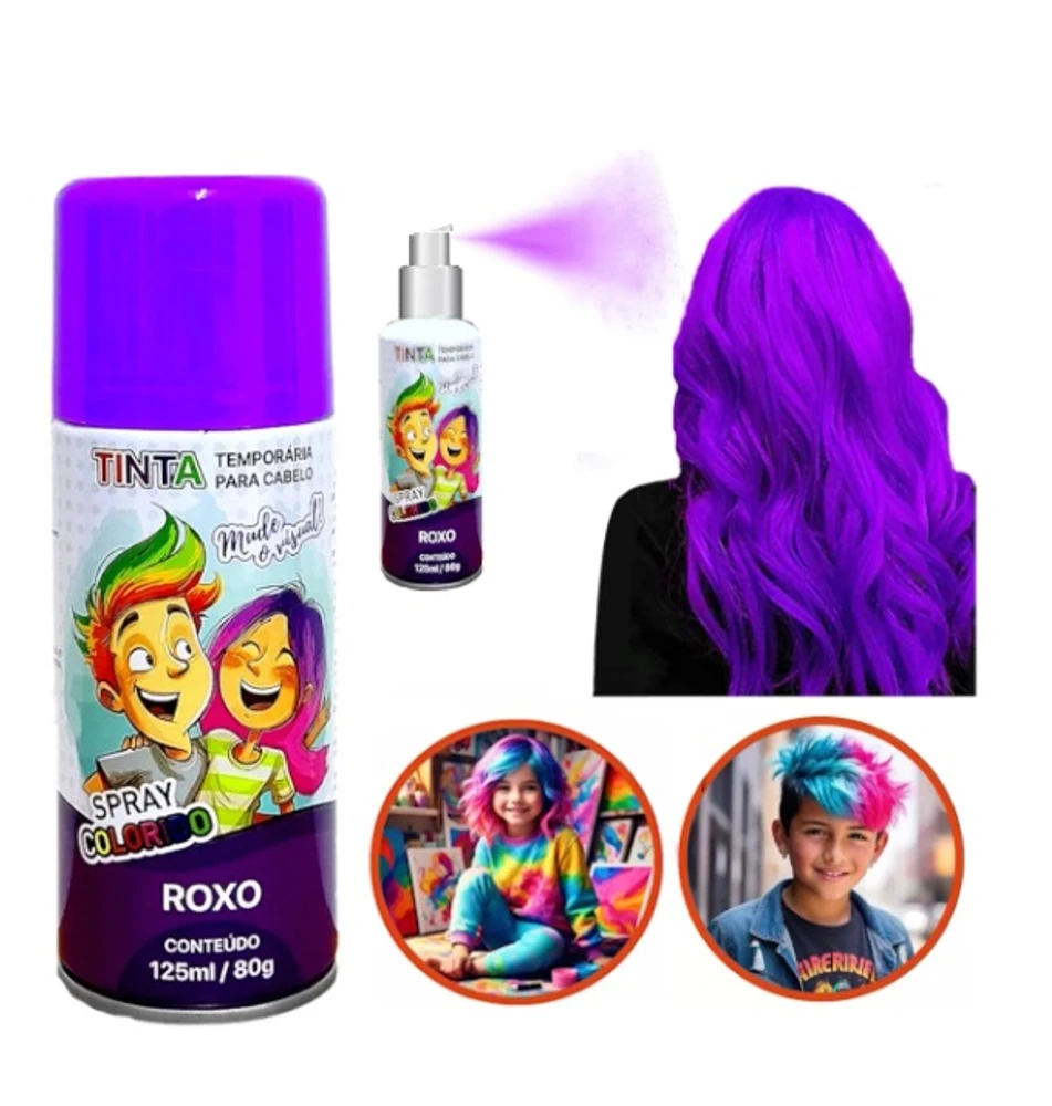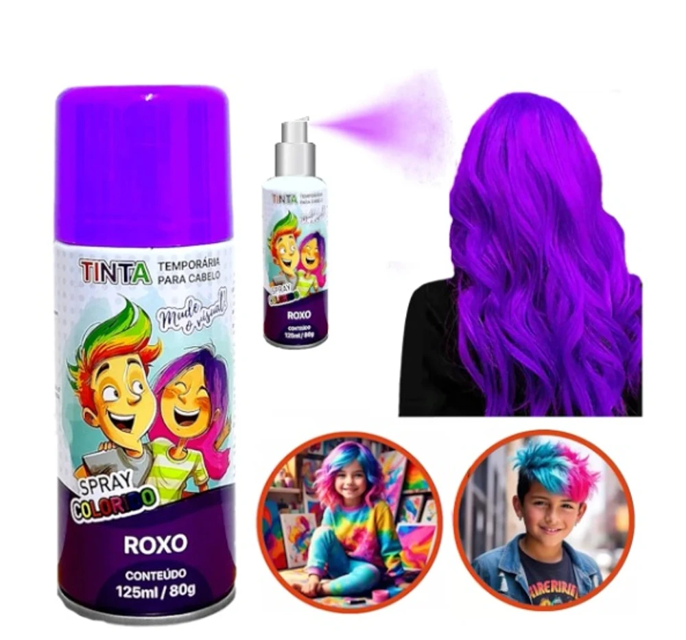 Mude o visual com penteados coloridos e divertidos. Adultos e crianças podem entrar na brincadeira e pintar os cabelos em festas e eventos com os amigos. A lata contém 125ml de tinta lavável com cores vibrantes. Depois da diversão é só lavar os cabelos para voltar tudo ao normal.