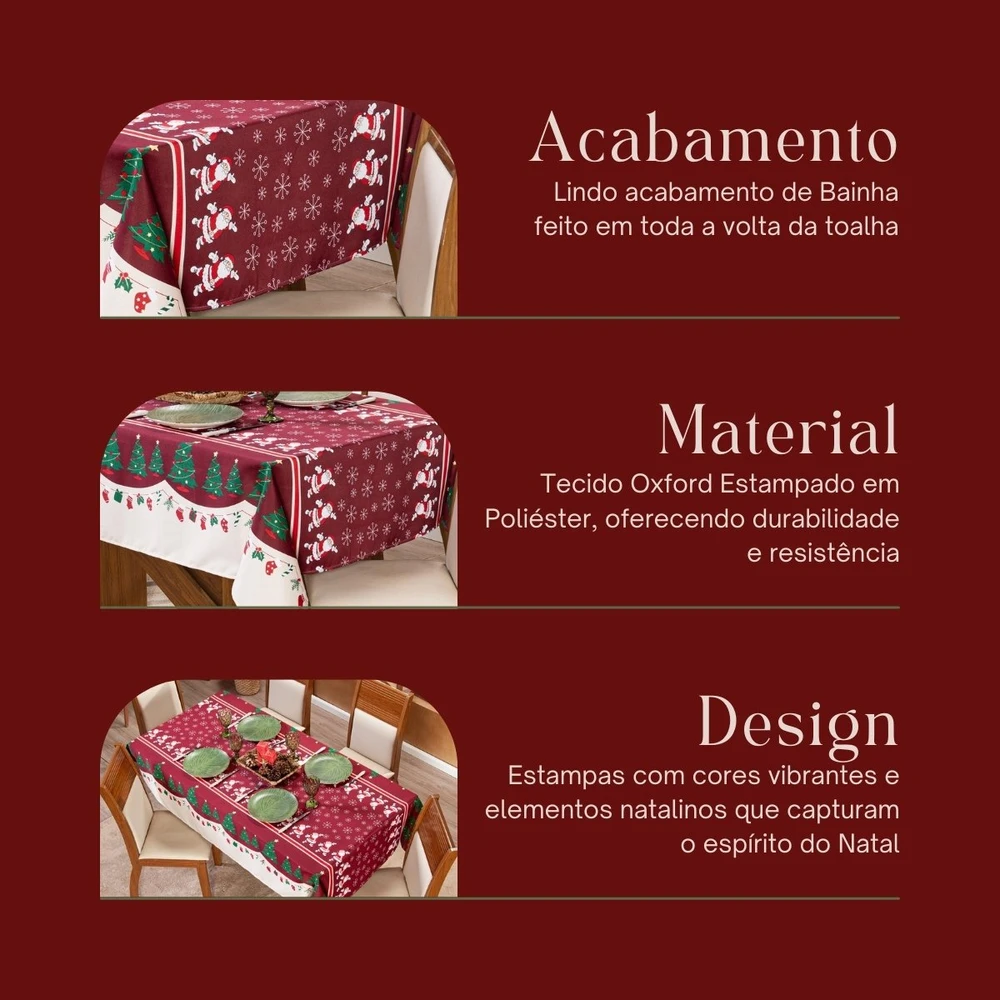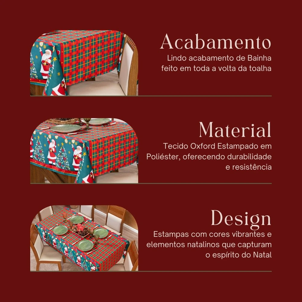 Adorne a decoração de sua cozinha com a Toalha de Mesa Estampada Natalina, ideal para criar uma atmosfera festiva em suas celebrações de fim de ano. Com dimensões de 1,40m x 1,40m, é perfeita para mesas quadradas de 4 lugares, adicionando um toque de charme e elegância às suas festas natalinas. Feita em tecido Oxford, a toalha oferece durabilidade e resistência, além de ser fácil de limpar e manter. O design natalino vibrante presente na toalha captura o espírito alegre do Natal, tornando-a uma escolha ideal para suas reuniões e celebrações de final de ano. Confira!
