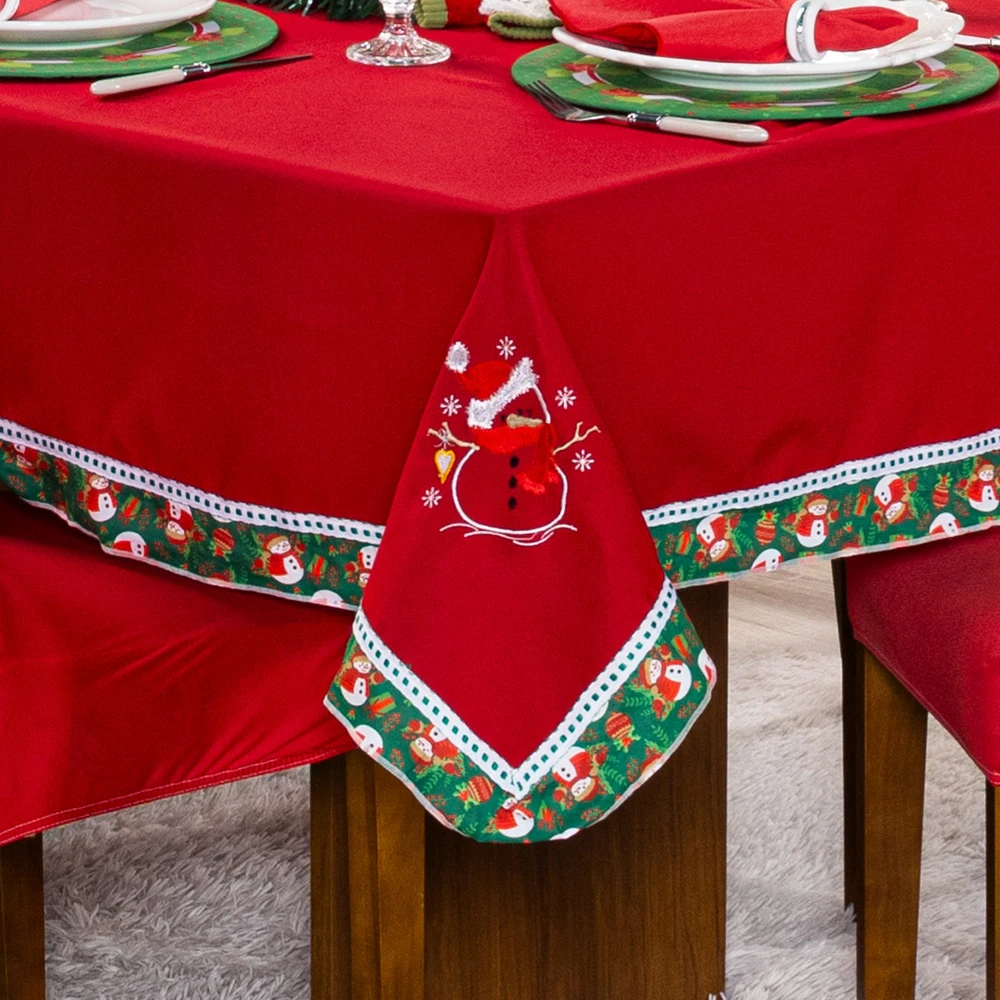 A Toalha de Mesa Retangular Avulsa Bordada Natalina é o toque perfeito para tornar a sua celebração de Natal verdadeiramente especial. Com um design encantador de boneco de neve em um vibrante vermelho natalino, esta toalha medindo 2,20m x 1,50m é ideal para acomodar até 6 lugares à mesa. Além de adicionar um toque festivo à sua decoração, a borda estampada cuidadosamente acrescenta um toque de elegância. Seja para a ceia de Natal em família ou uma reunião com amigos, esta toalha de mesa vai criar o ambiente perfeito para as festividades. Confira!