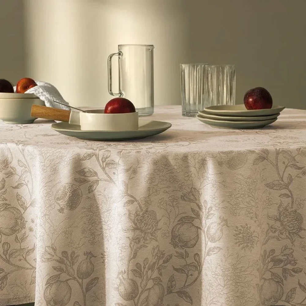 A Toalha de Mesa Roman combina charme e sofisticação para deixar suas refeições ainda mais especiais. Confeccionada em Jacquard, traz delicados frutos e galhos que adicionam personalidade à mesa, enquanto sua trama densa garante resistência e durabilidade. A tecnologia Sempre Limpa facilita a remoção de manchas, mantendo o tecido sempre bonito com menor esforço. Na tonalidade bege, harmoniza com diferentes estilos de decoração, criando uma composição elegante e acolhedora para momentos em família ou com amigos.