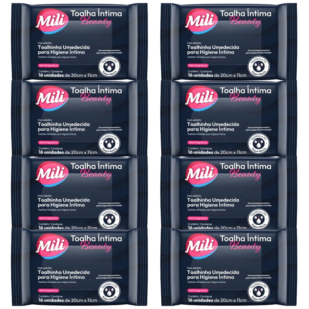 8 pacotes com 16 unidades de 20x11cm (total: 128 toalhinhas)