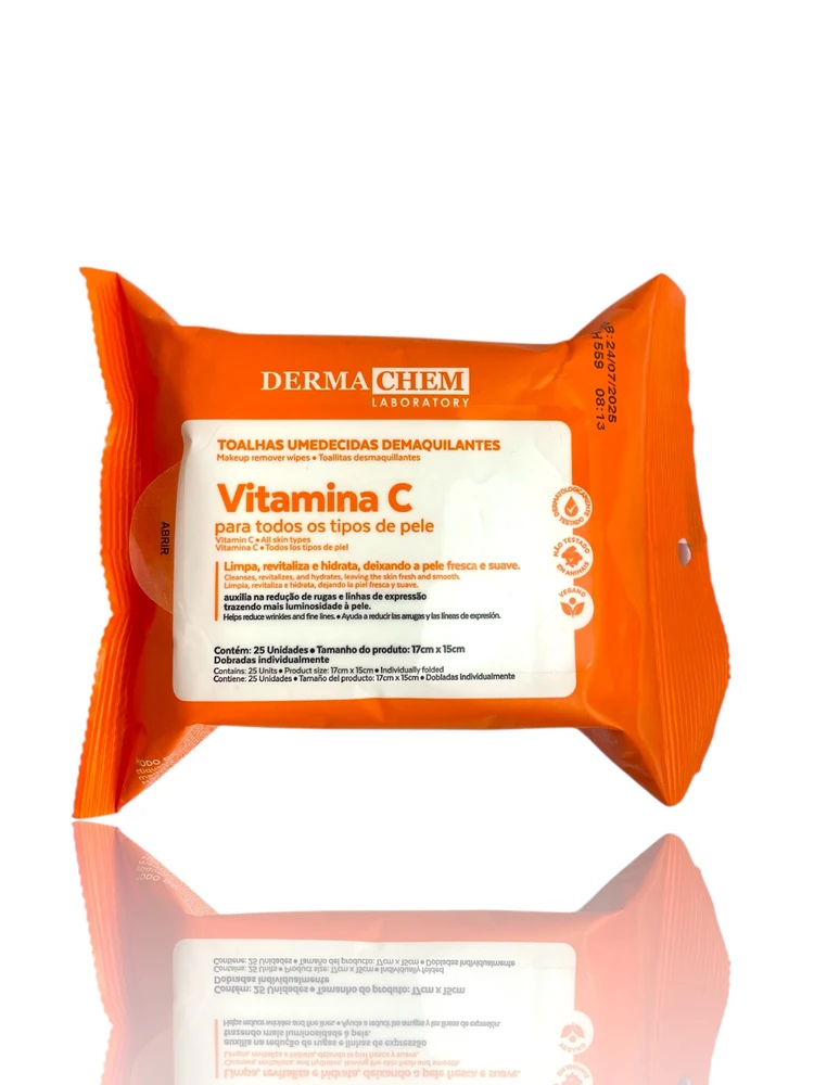 Toalhas Umedecidas Demaquilantes Derma Chem – Vitamina C | Pele limpa e iluminada