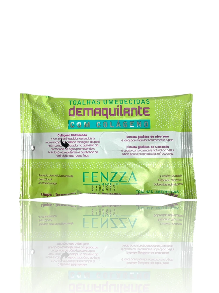 As Toalhas Demaquilantes com Colágeno Fenzza foram desenvolvidas para limpar a pele com suavidade, removendo toda a maquiagem e as impurezas do dia.