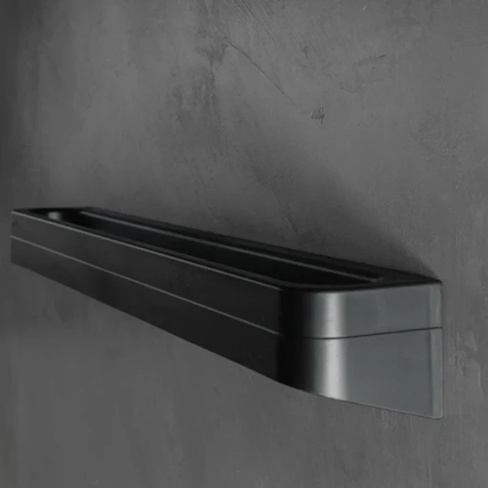 Seu formato horizontal com rebaixo integrado garante estabilidade aos frascos, evitando quedas acidentais. Além disso, dispõe de ganchos internos discretos ideais para pendurar esponjas, escovas de banho ou lâminas de barbear, mantendo tudo ao alcance. A base com escoamento facilita a limpeza e evita acúmulo de água, tornando-a perfeita para uso dentro ou fora do box.