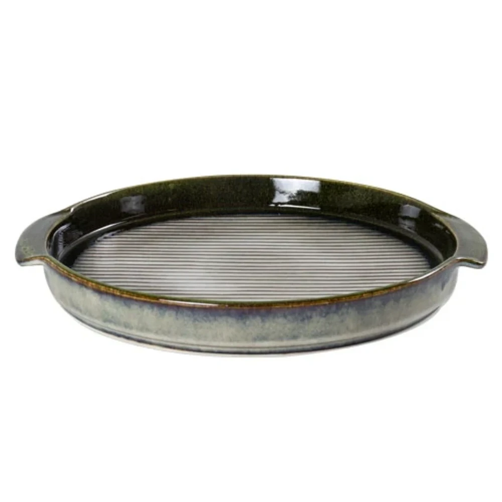 Com capacidade de 1 litro e dimensões aproximadas de 31,5x28x3,8cm, seu formato oval oferece espaço amplo para servir pratos como saladas, aperitivos, carnes ou acompanhamentos, garantindo uma apresentação harmoniosa. A cerâmica mantém a temperatura dos alimentos, unindo funcionalidade e beleza.