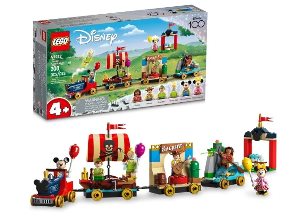 Trem de Celebração da Disney inclui uma estação, motor, 3 carros alegóricos de trem e 6 minifiguras LEGO: Mickey Mouse, Minnie Mouse, Moana, Peter Pan, Sininho e Woody. Você e seus filhos podem desfrutar de uma aventura de construção intuitiva com o aplicativo LEGO Builder, que permite ampliar e girar.