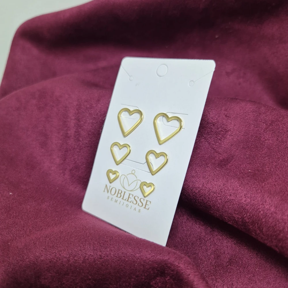 TRIO DE BRINCOS DE CORAÇÃO BANHADO OURO 18K