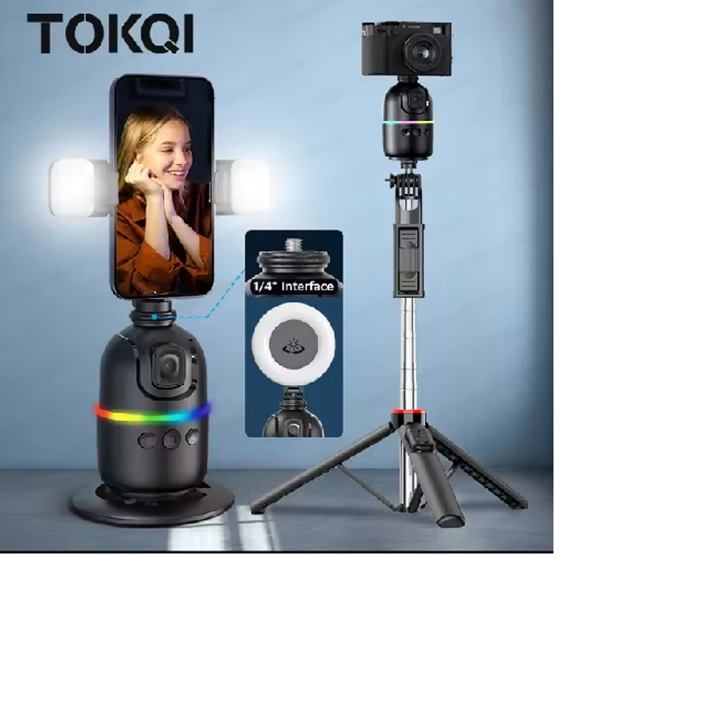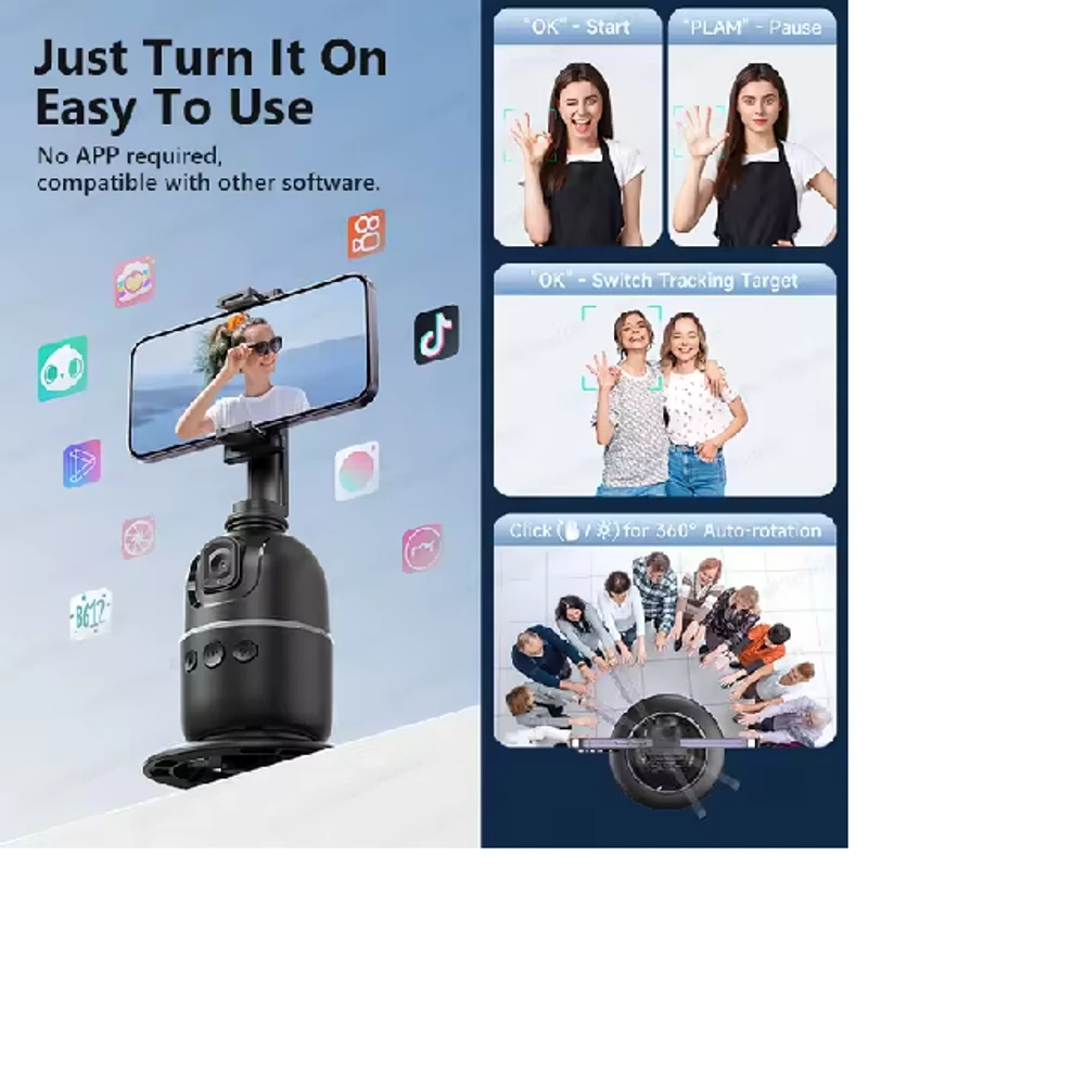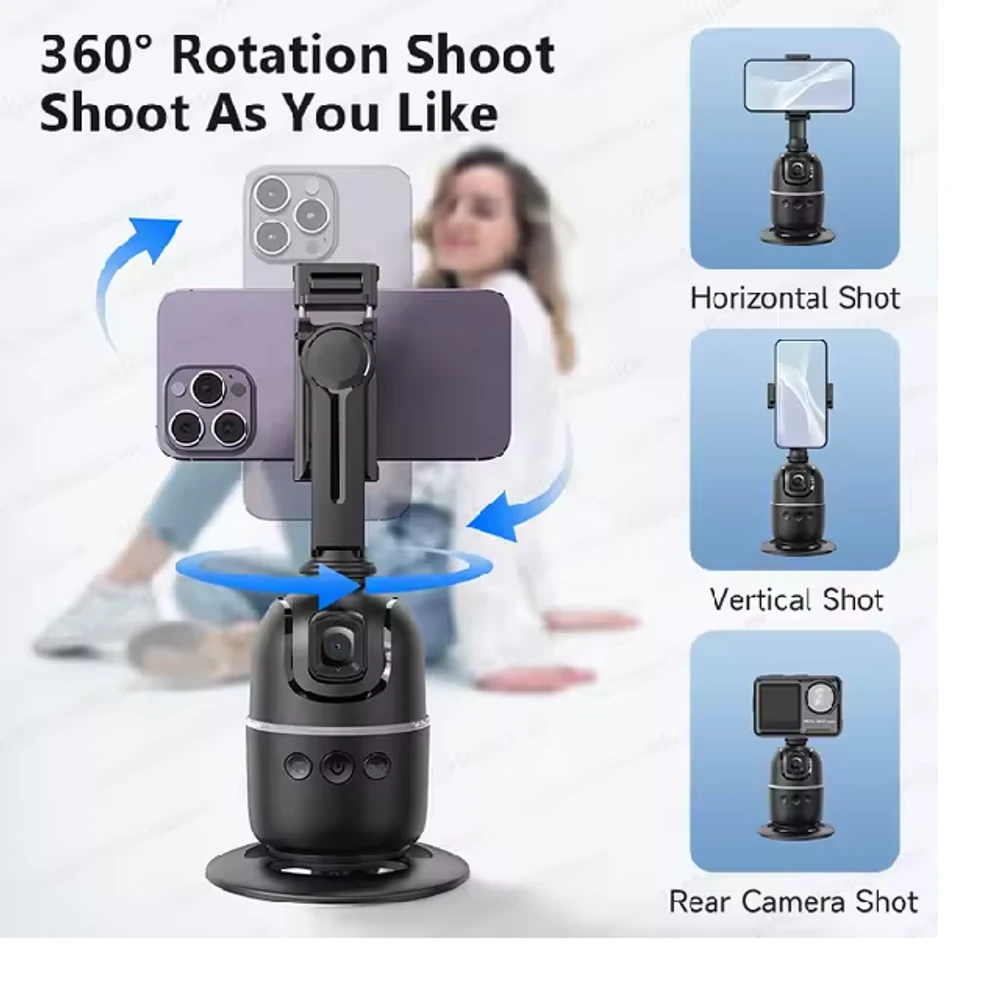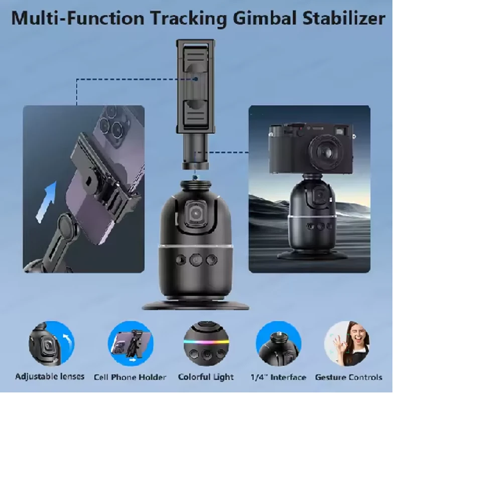 Com uma base firme e estável, o Suporte Estabilizador 360º também pode ser facilmente acoplado a tripés, permitindo maior flexibilidade no posicionamento e no enquadramento. Um dos seus grandes diferenciais é o avançado sistema de rastreamento facial, que identifica e acompanha seus movimentos em tempo real. Dessa forma, você tem sempre o melhor ângulo capturado, sem a necessidade de ajustes manuais, o que é ideal para vídeos dinâmicos, gravações de conteúdo para redes sociais ou chamadas em vídeo.