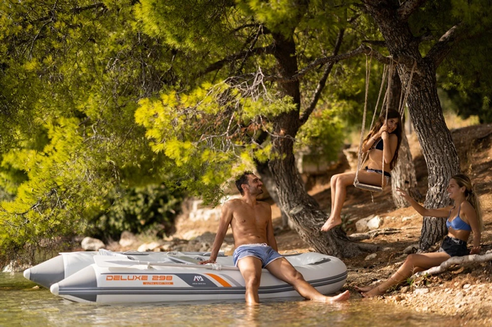 Com proa tipo U e deck de ar DWF, a nova série DELUXE é mais sofisticada na construção e produção. E nossos 20 anos de experiência em embarcações infláveis são apenas a garantia de nosso profissionalismo em fazer esta série da mais alta qualidade. Os novos barcos DELUXE são extremamente leves, mas inesperadamente rígidos, devido à tecnologia de soldagem de alta frequência da Aqua Marina e à tecnologia Drop Stitch Light aplicada no piso.