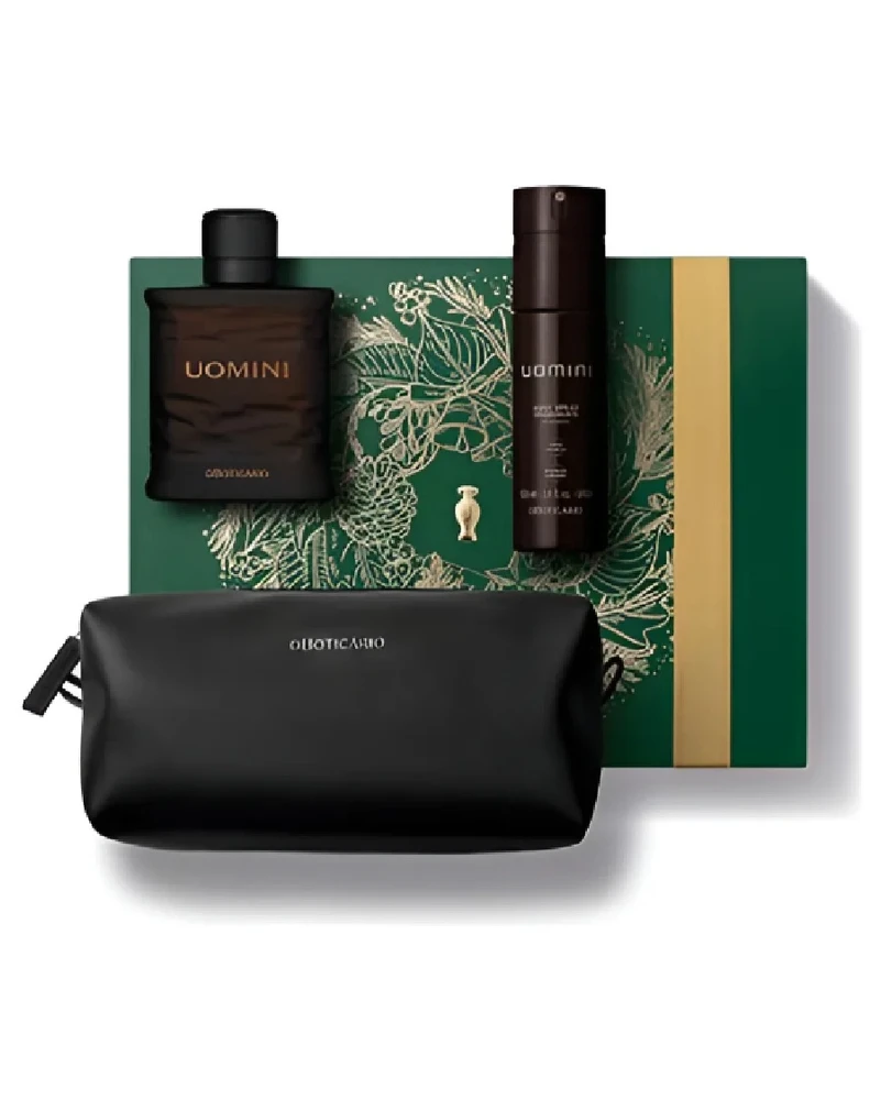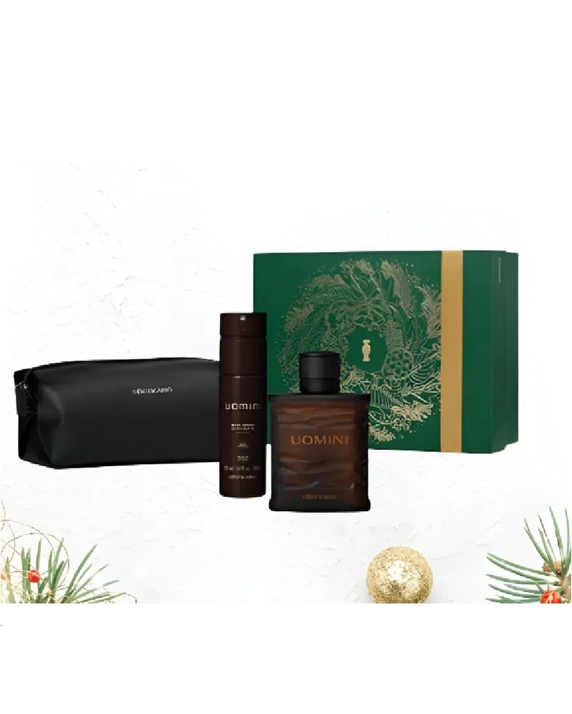 Conteúdo da Embalagem: 01 Desodorante Colônia Uomini 100ml; 01 Desodorante Body Spray Uomini 100ml; 01 Necessaire Masculina Preta Premium; 01 Caixa de Presente. Nenhum produto do Boticário é testado em animais.