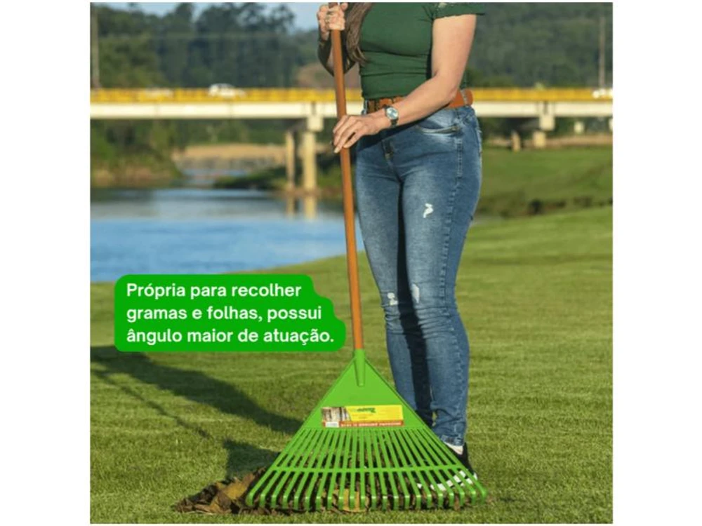 Própria para recolher gramas e folhas, possui ângulo maior de atuação.
